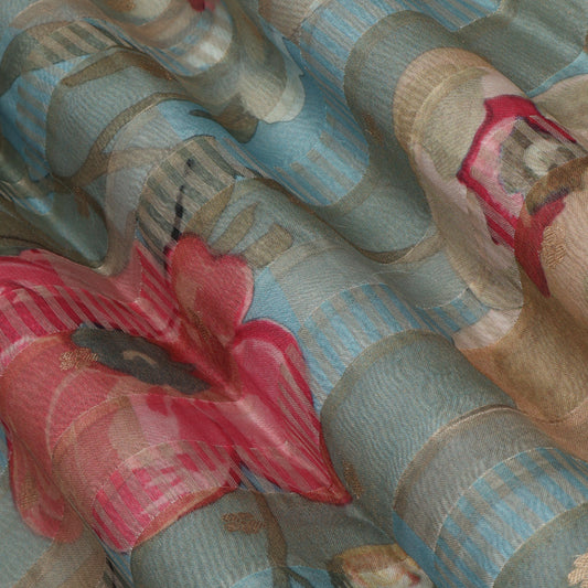 Floral Printed Organza Fabric for Festive & Party Wear