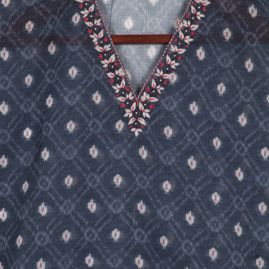 Black, Gray And Sky Blue Colors Crosia Fabric