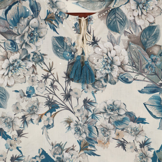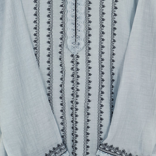 Sky Blue Color Cotton Printed Border Embroidery Fabric