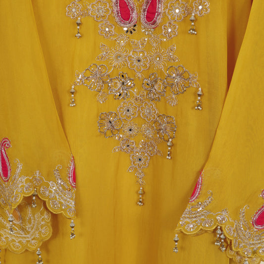 Yellow Color Cotton Printed Border Embroidery Fabric