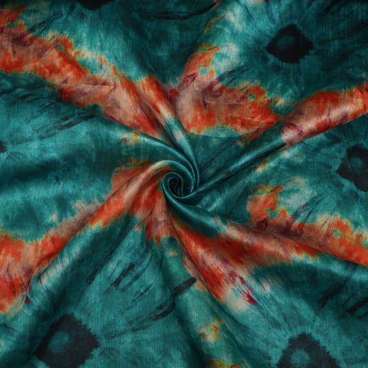 Teal Green Color Dupion Print Fabric