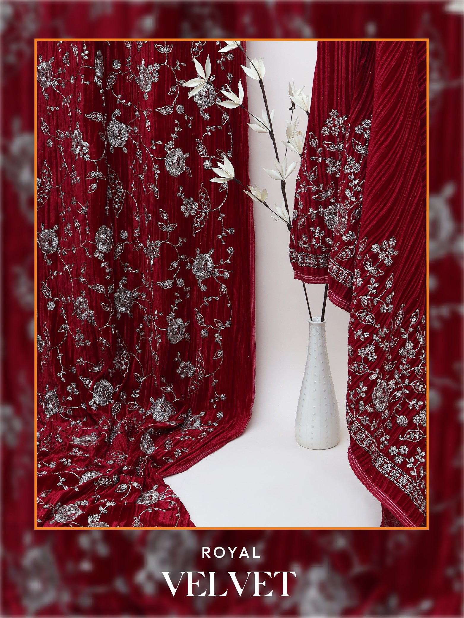 Discover the perfect blend of elegance and craftsmanship with our imported crepe fabrics, beautifully adorned with intricate embroidery for a timeless look
