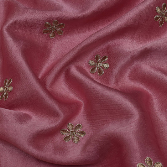 Baby Pink Color Gajji Silk Embroidery Fabric