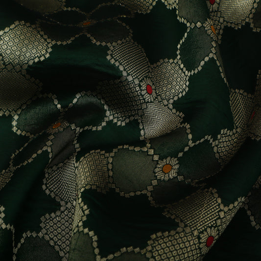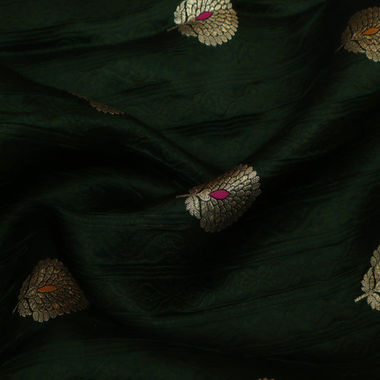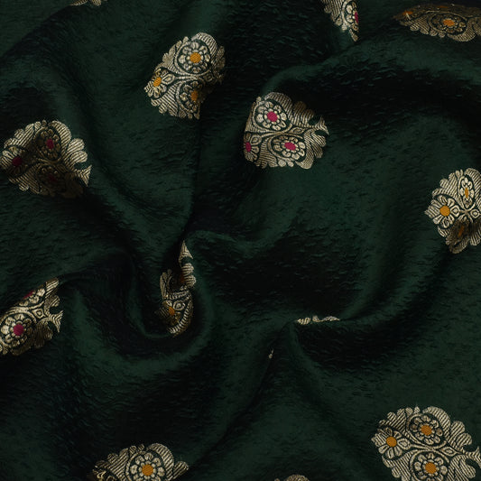 BOTTLE GREEN Color Satin Meena Brocade Fabric