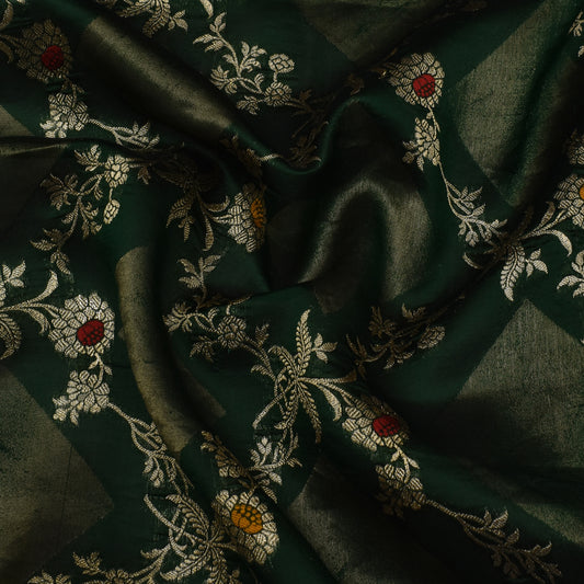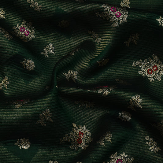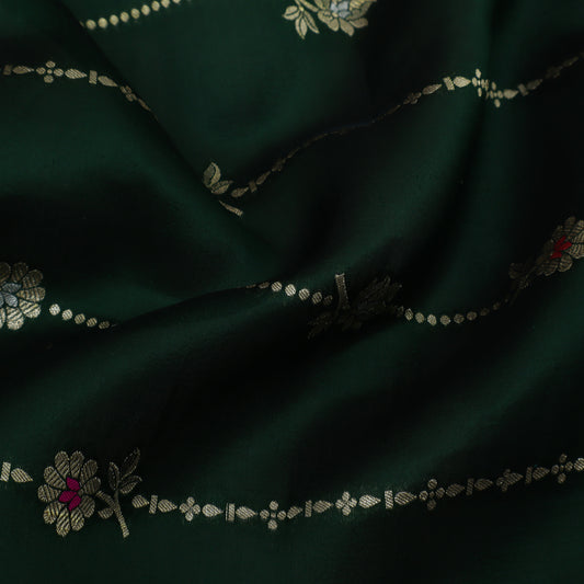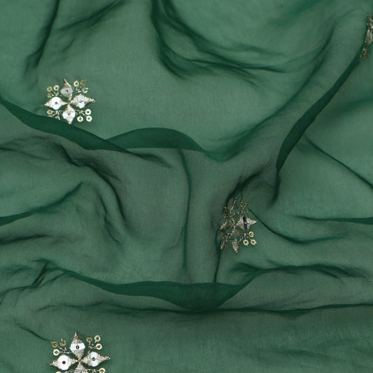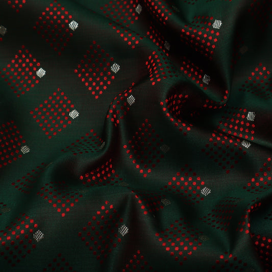 Bottle Green Color Katan Zari Booti Embroidery Fabric