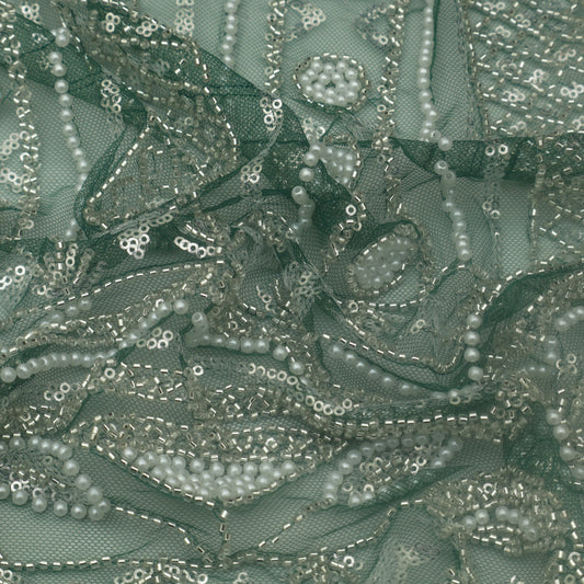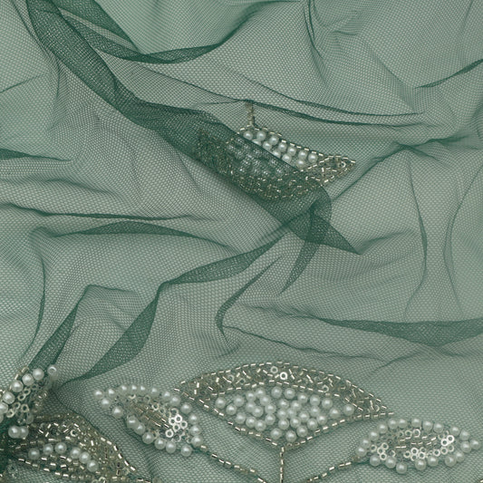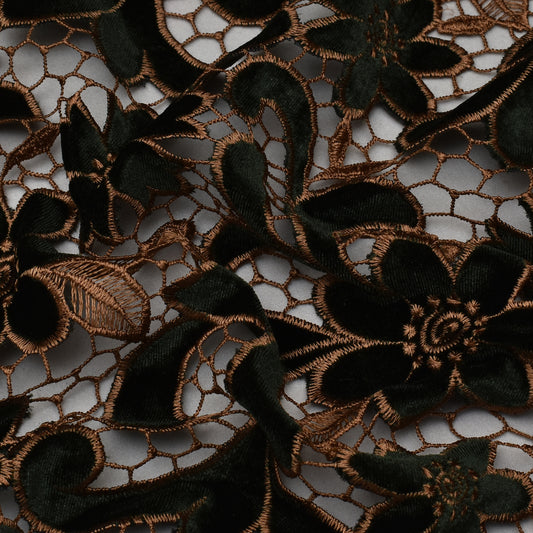 BOTTLE GREEN Color Velvet Embroidery Fabric