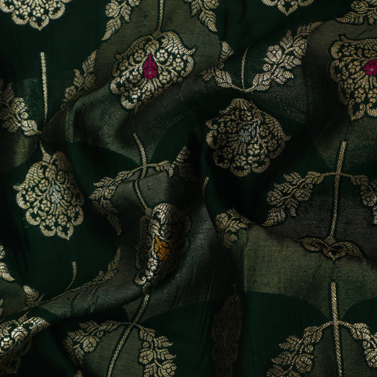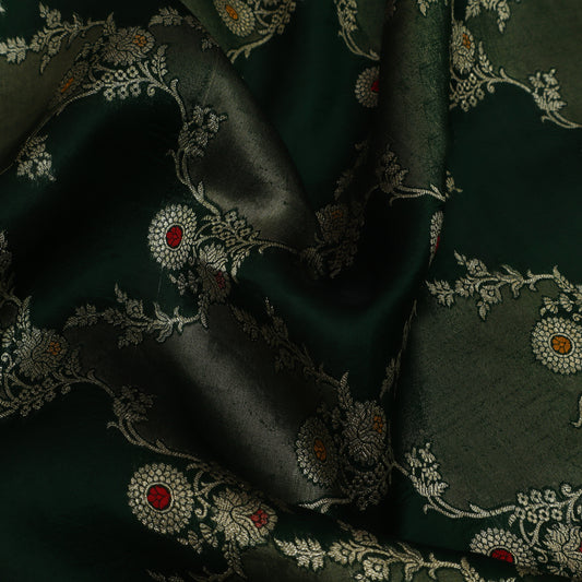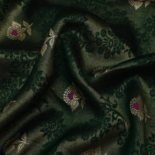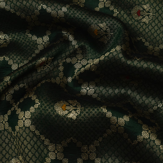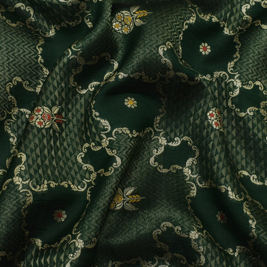 Bottle Green Color KimKhab Brocade Fabric (Cut Pieces 3Mtr)