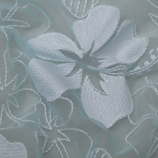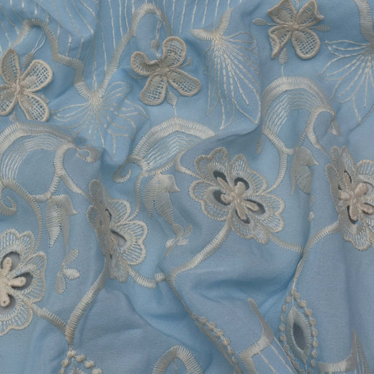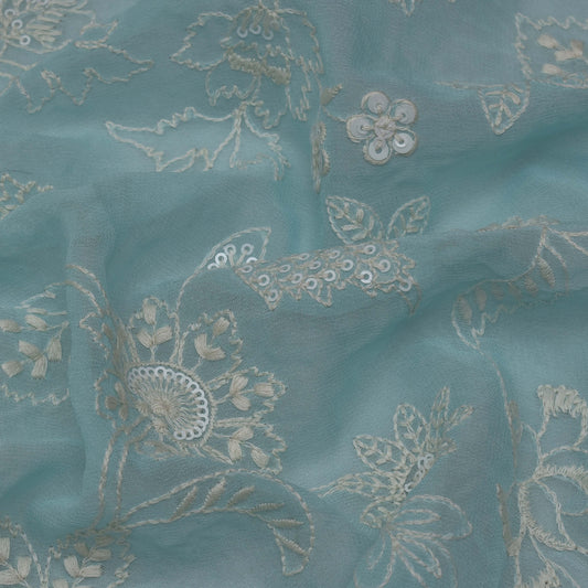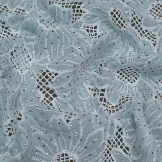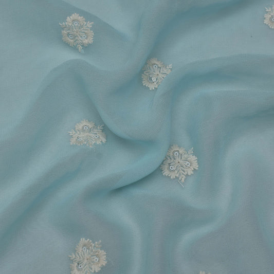 Sky Blue Color Crepe Chikan Embroidery Fabric