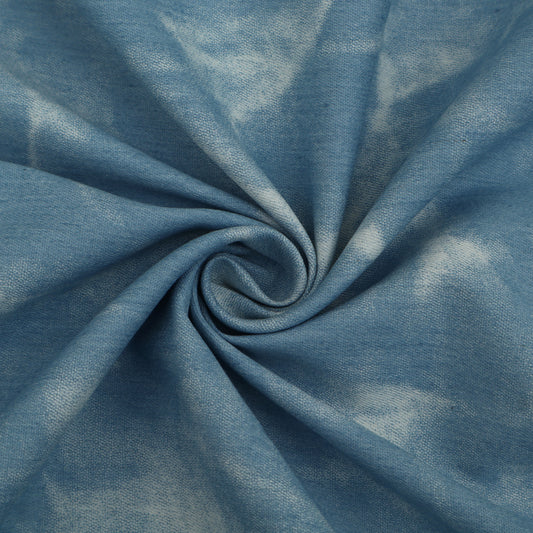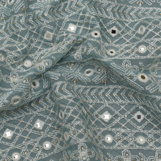 Sky Blue Color Crepe Print Mirror Work Fabric