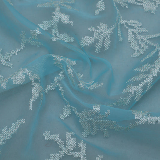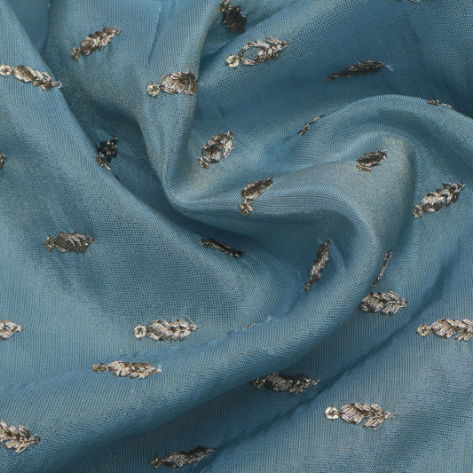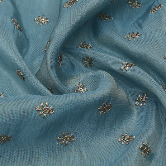 Sky Blue Color Tissue Booti Embroidery Fabric