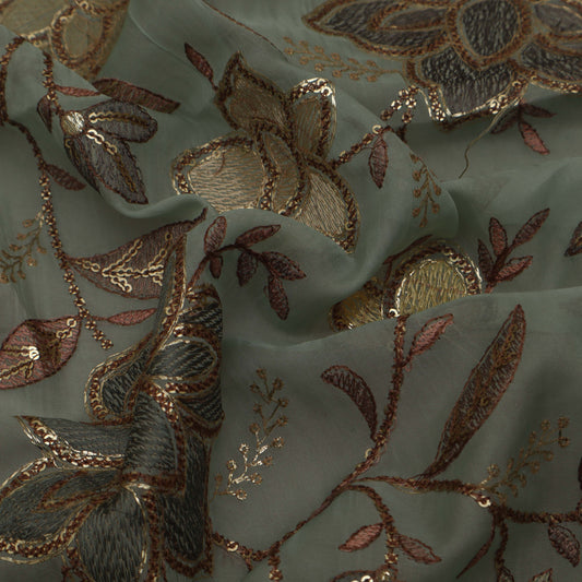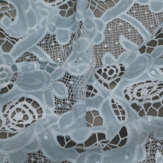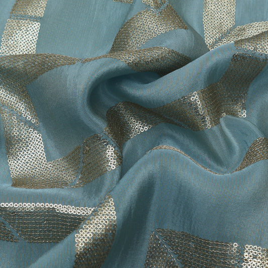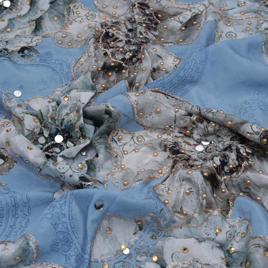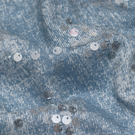 Sky Blue Color Denim Sequence Embroidery Fabric