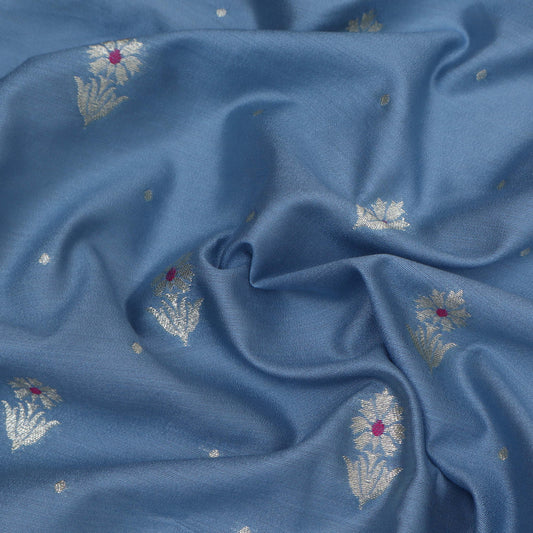 Sky Blue Color Chinia Dupion Silk Brocade Fabric