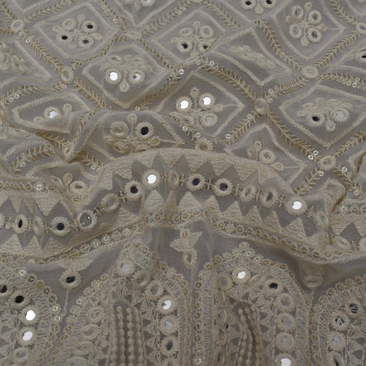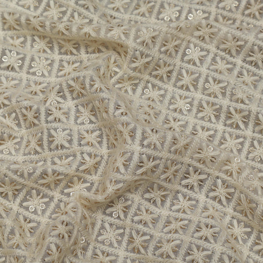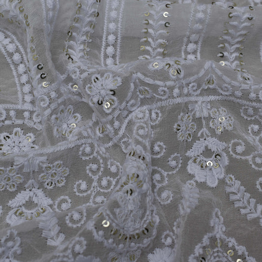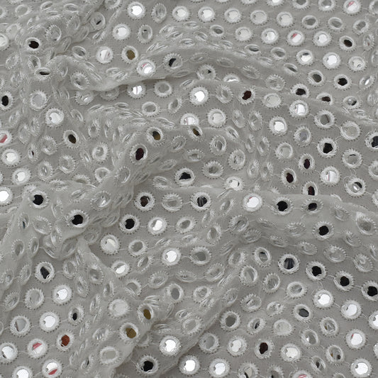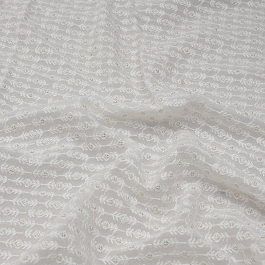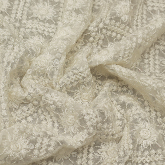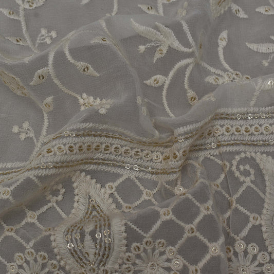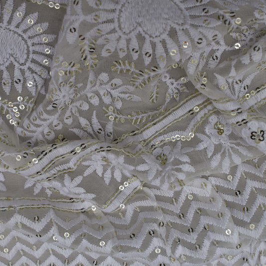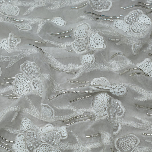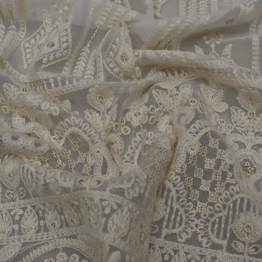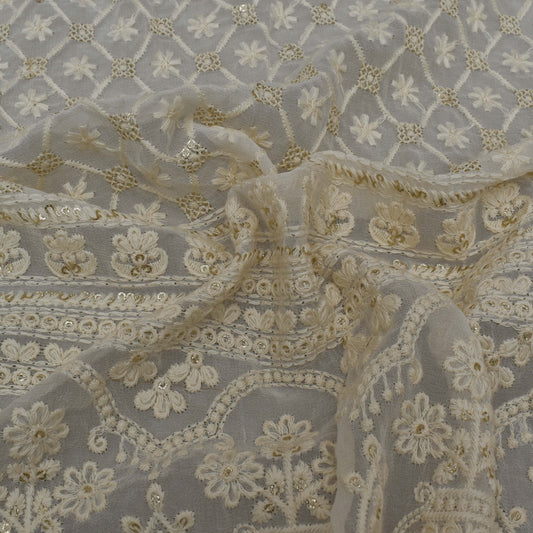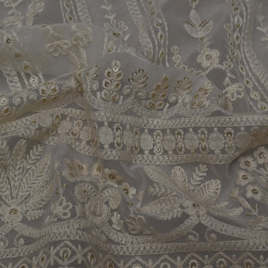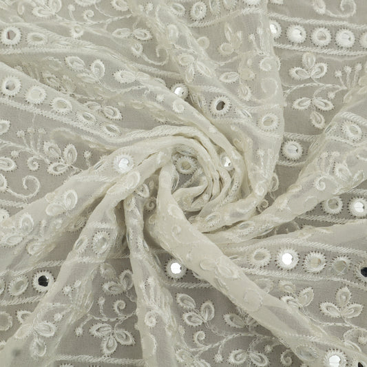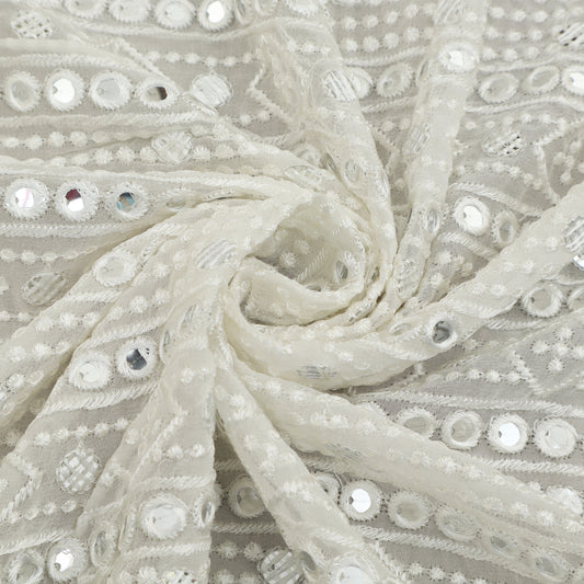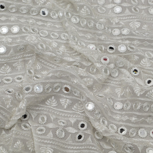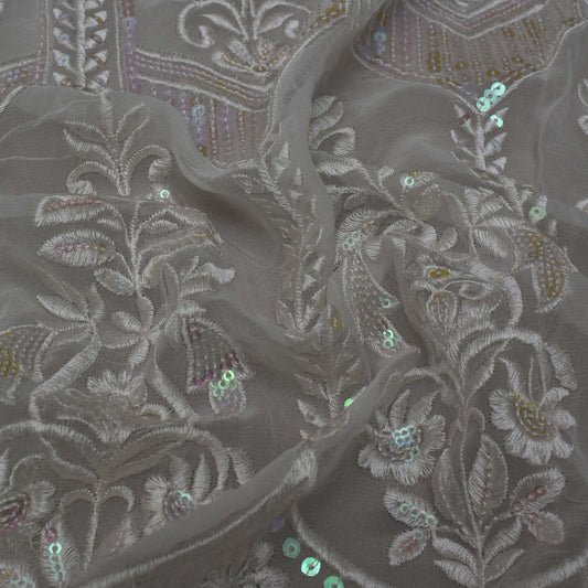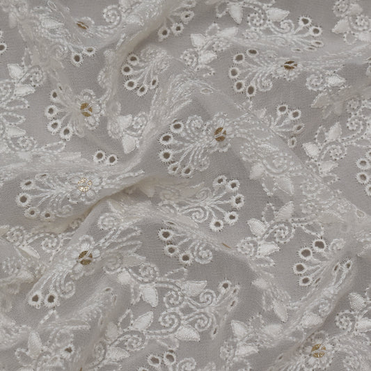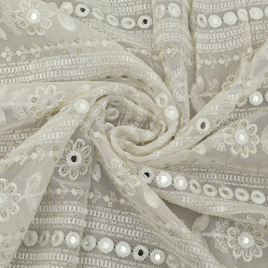 White Color Georgette Embroidery Fabric (Cut Pieces 1Mtr)