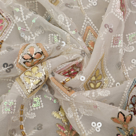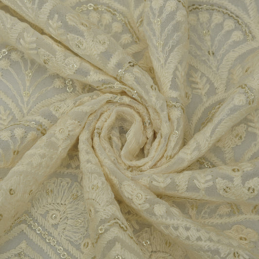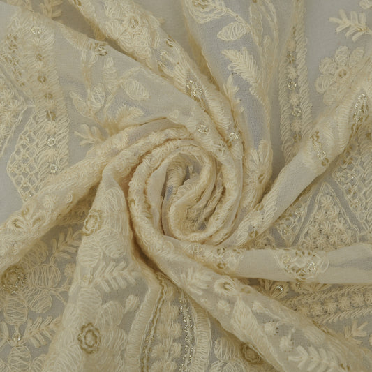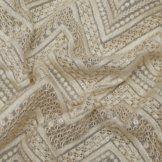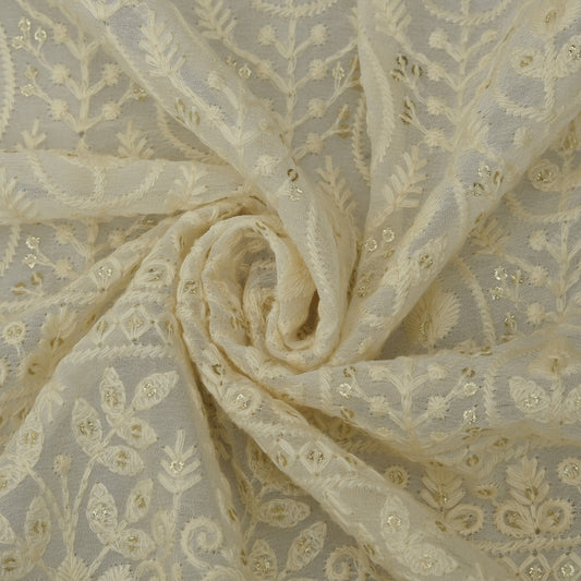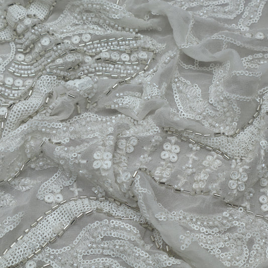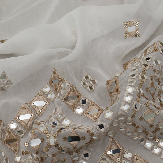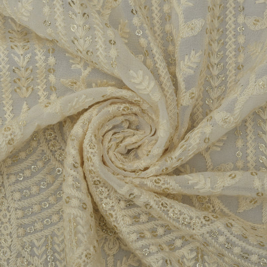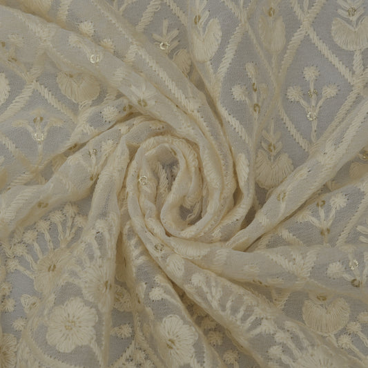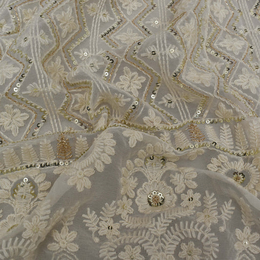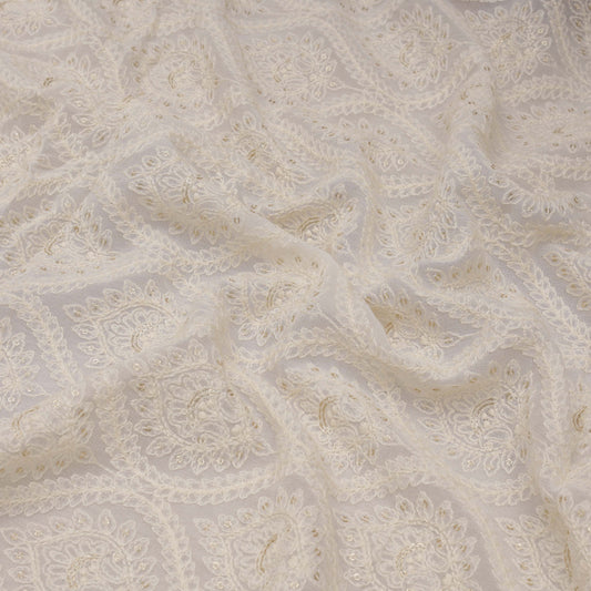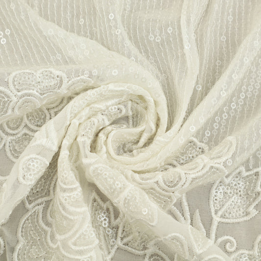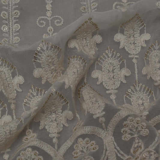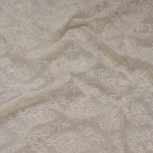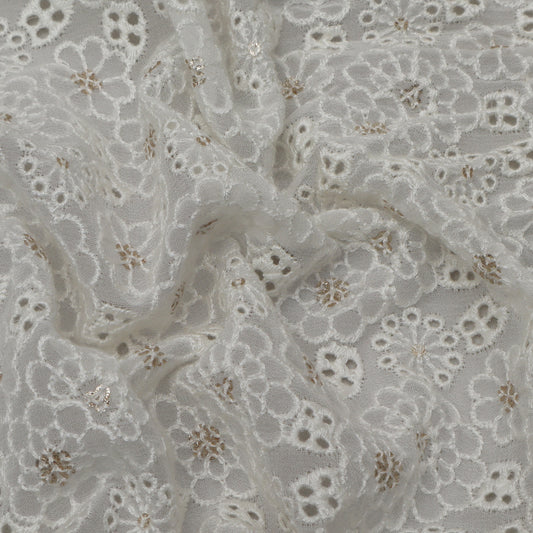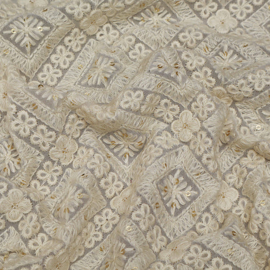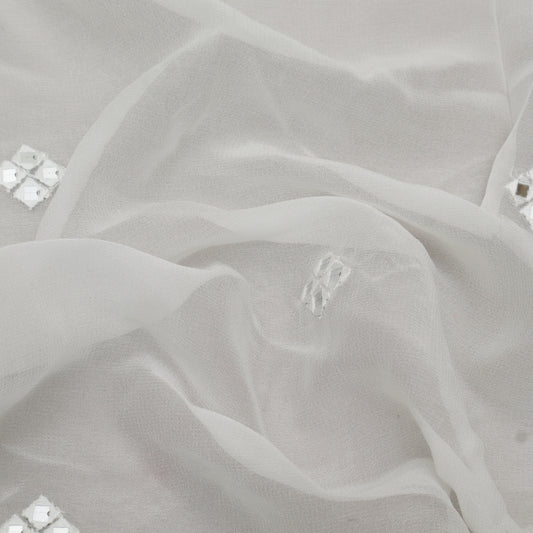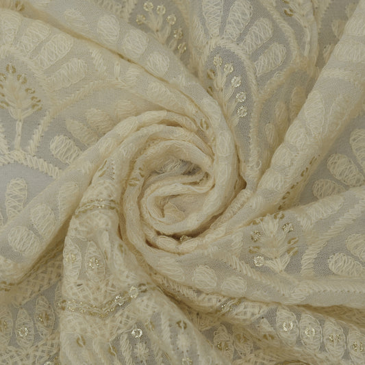 White Color Georgette Embroidery Fabric (Cut Pieces 1Mtr)