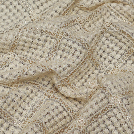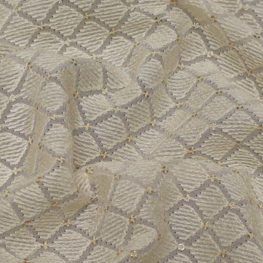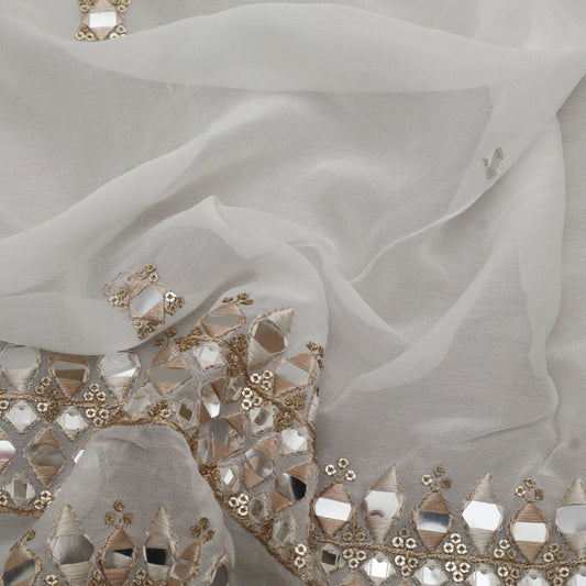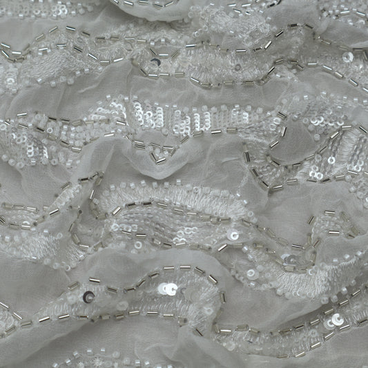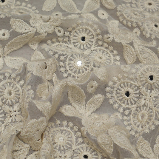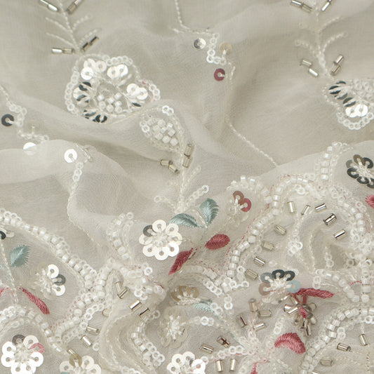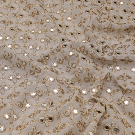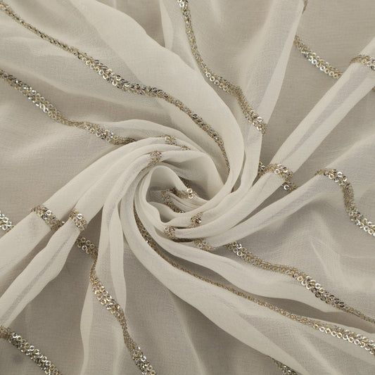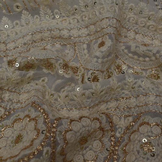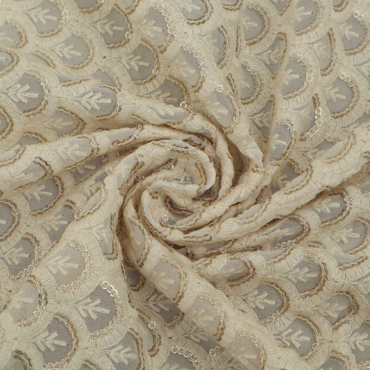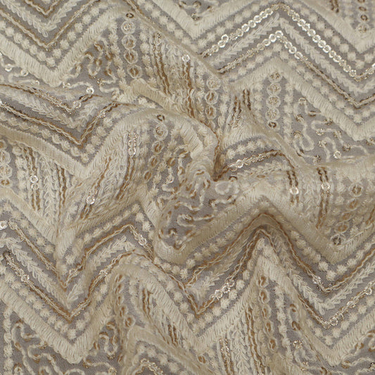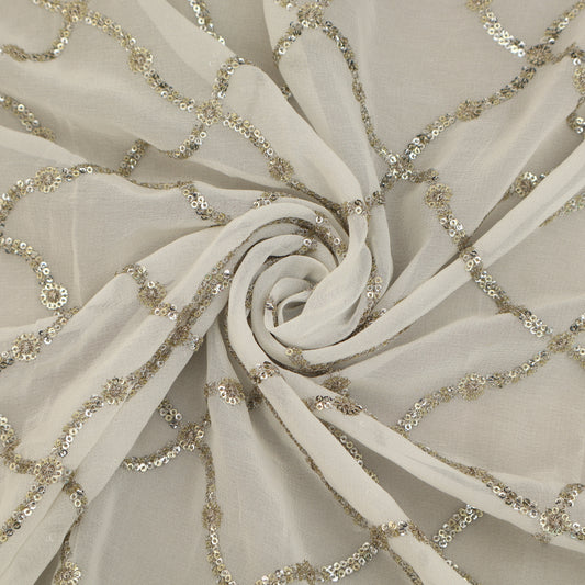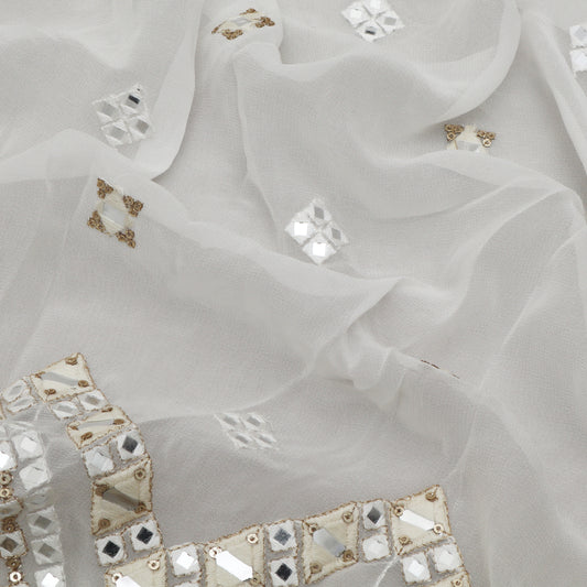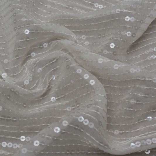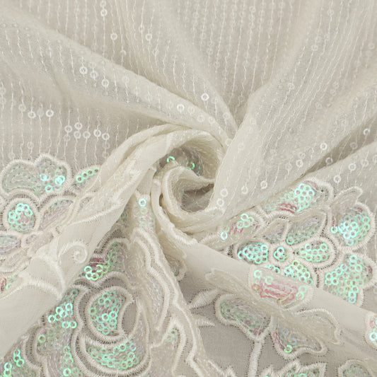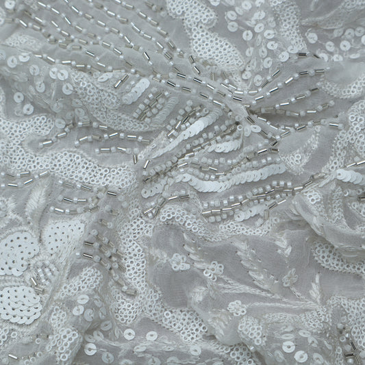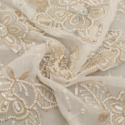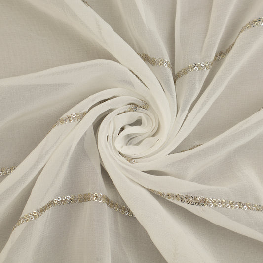 White Color Georgette Embroidery Fabric (Cut Pieces 1Mtr)