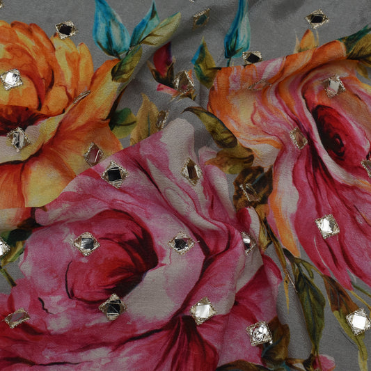 Charcoal Grey Solid Color Barbie Crepe Fabric