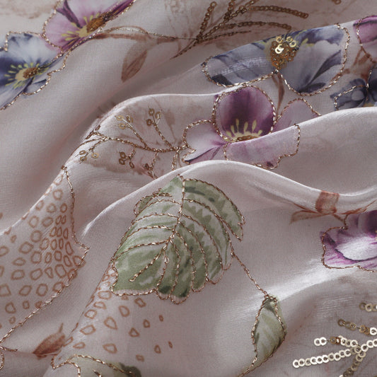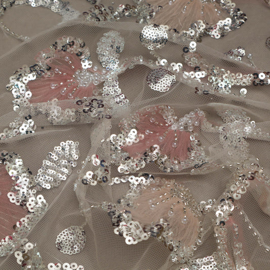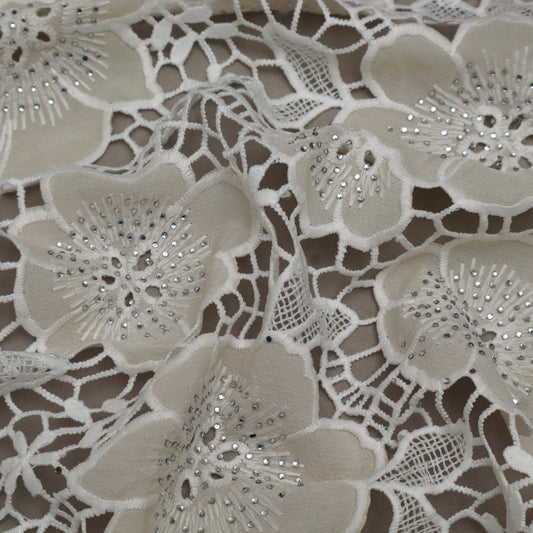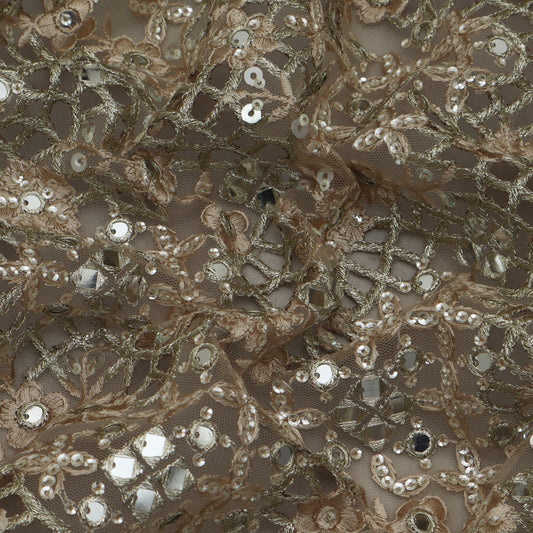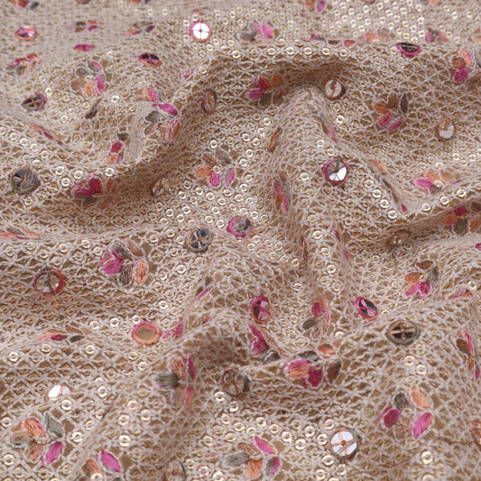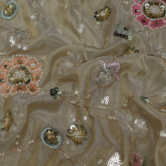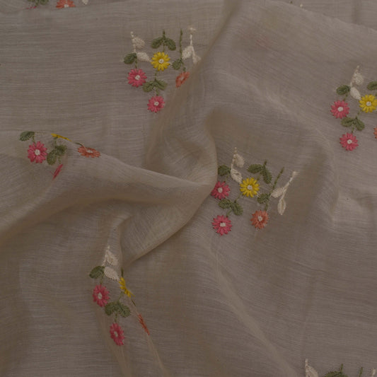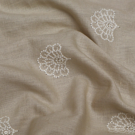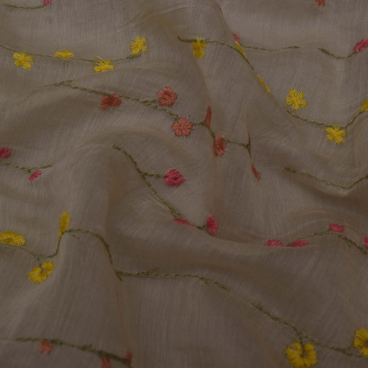 Beige Color Fabric Nokia Silk Embroidery Fabric