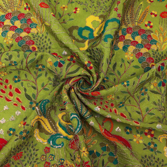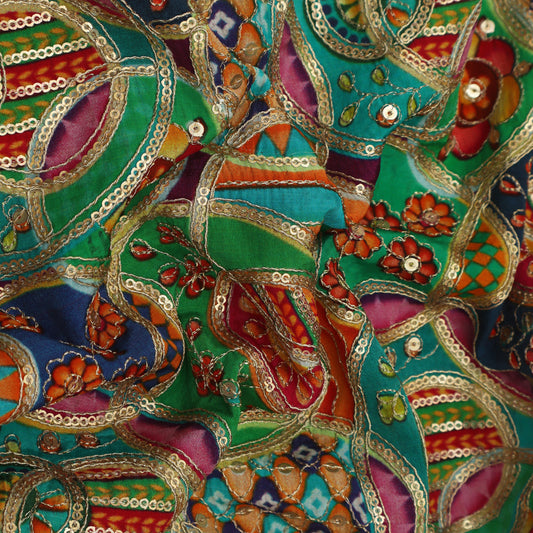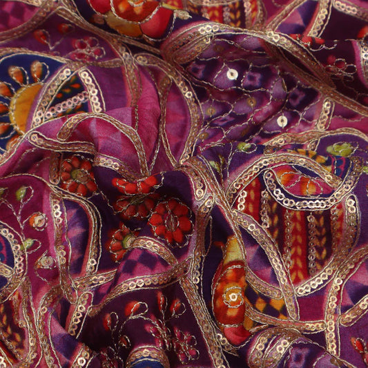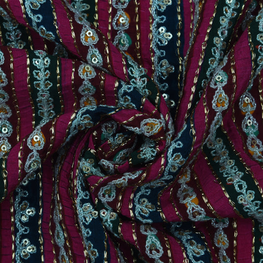 Crepe Position Print Embroidery Fabric (Cut Pieces 2Mtr)