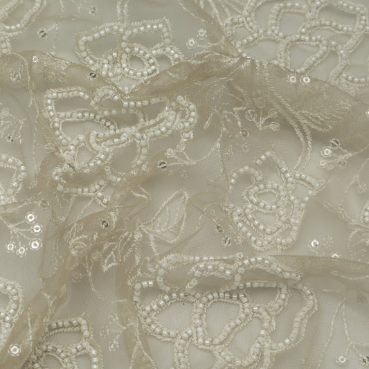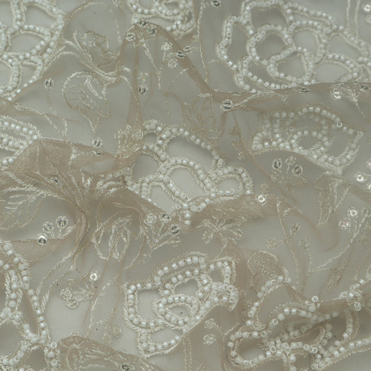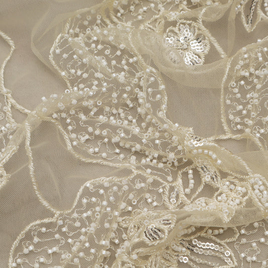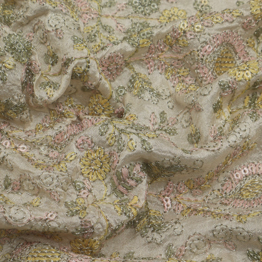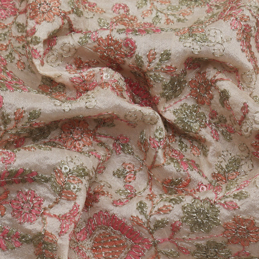 Cream Color Katan Dupion Silk Embroidery Fabric