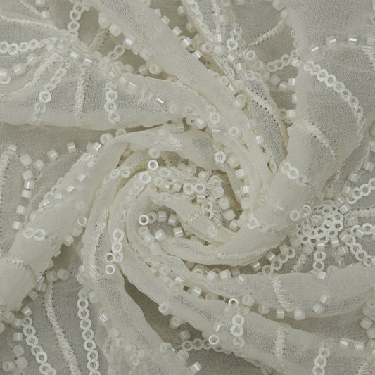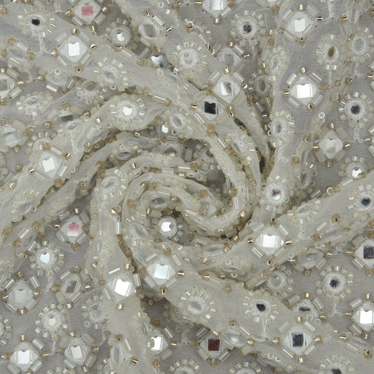 Dyeable Georgette Mirror Work Embroidery Fabric