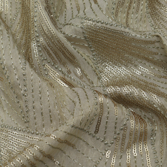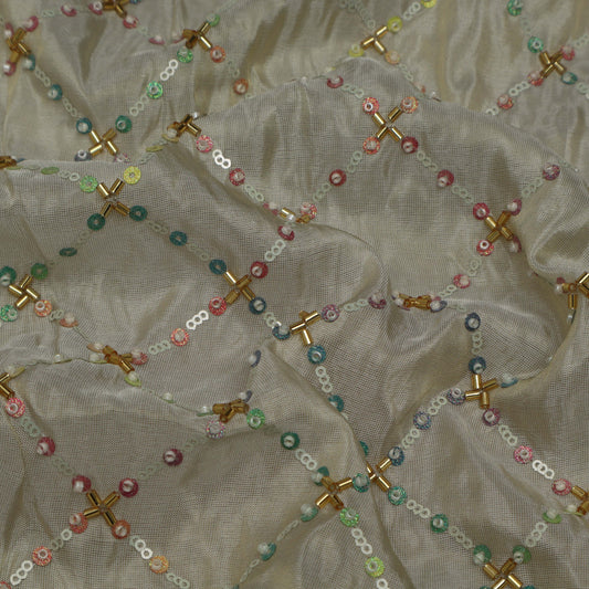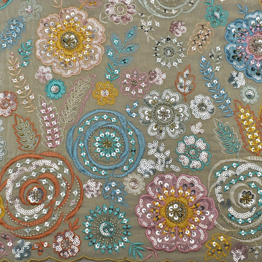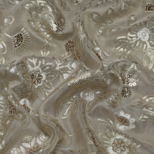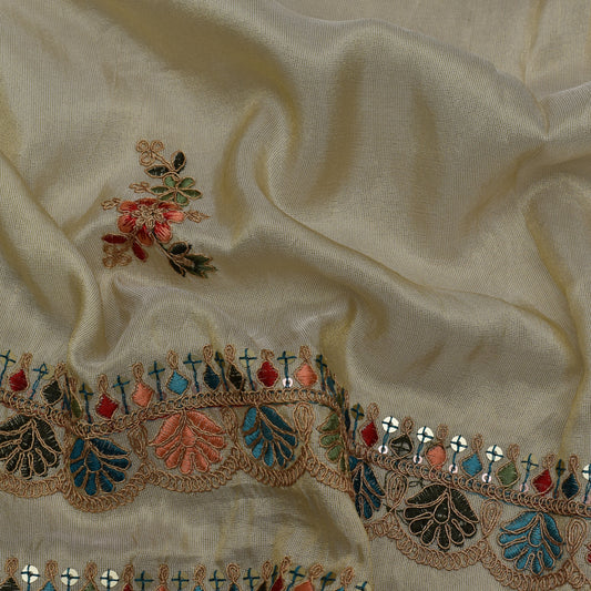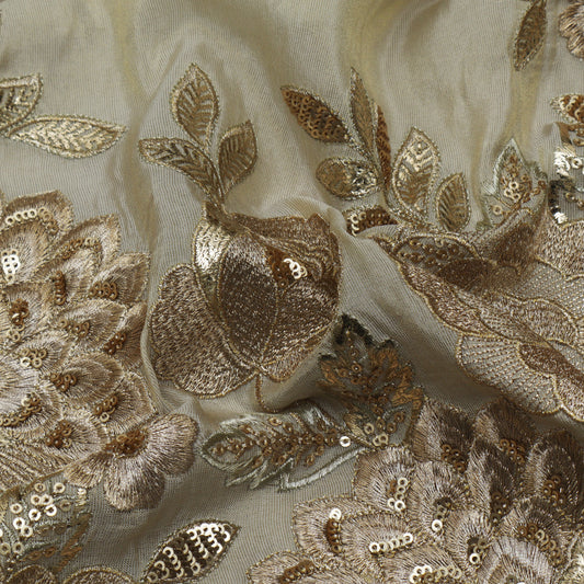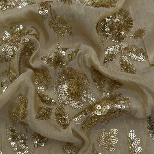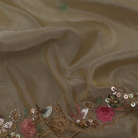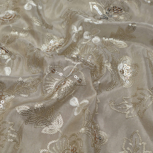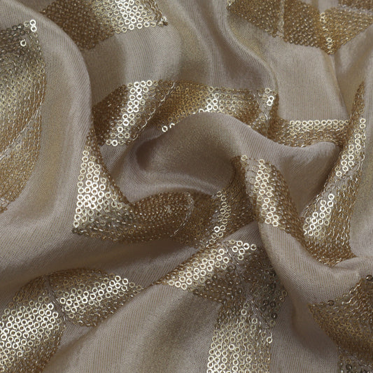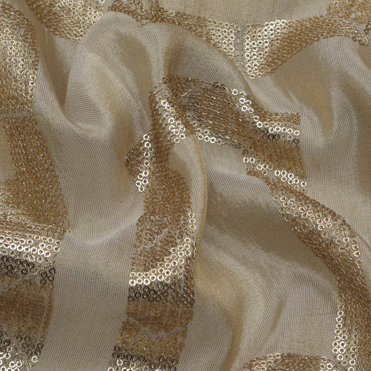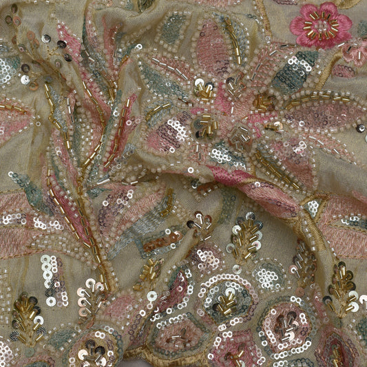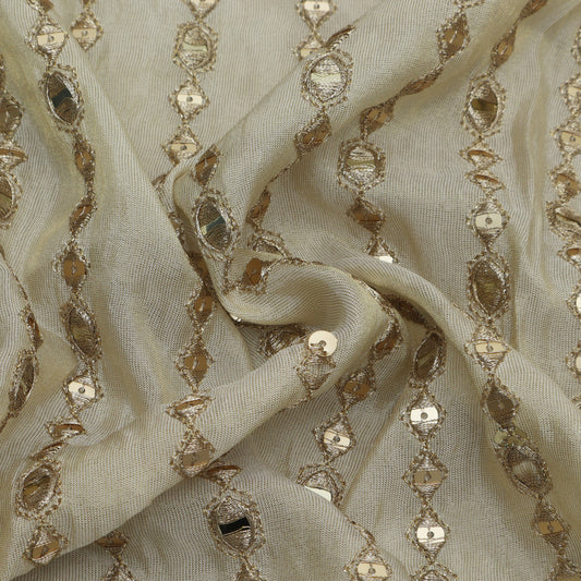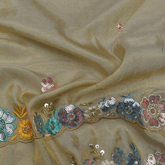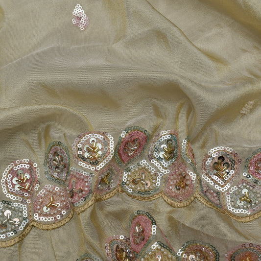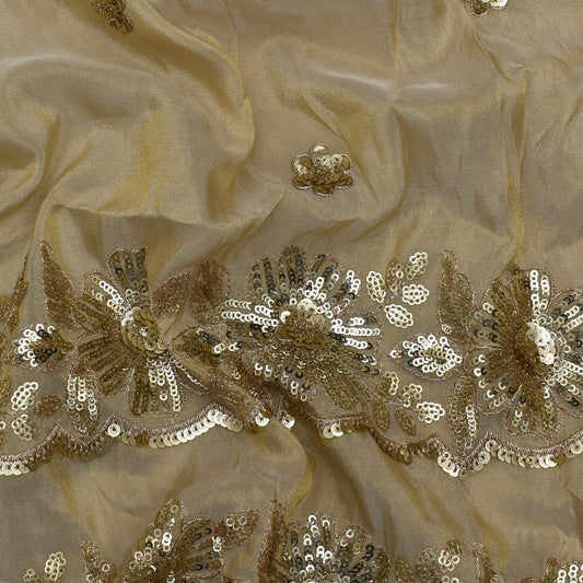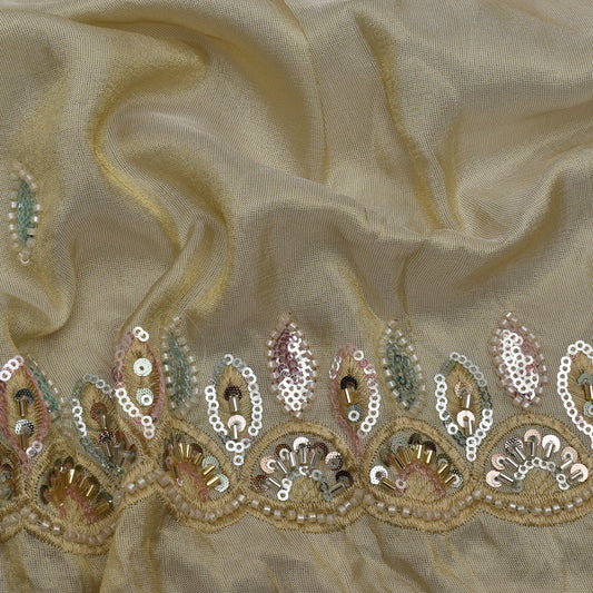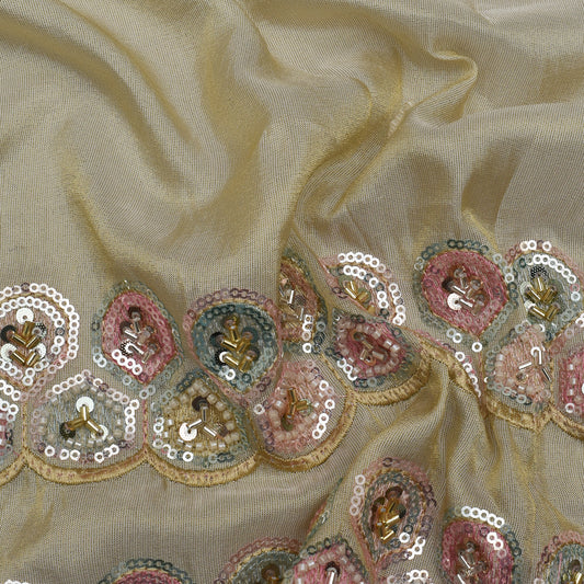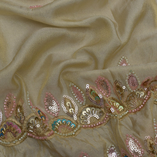 Beige Color Tissue Border Sequins Embroidery Fabric