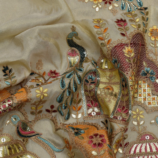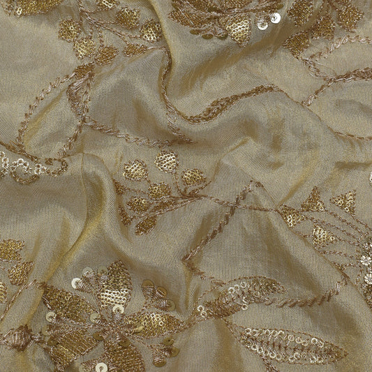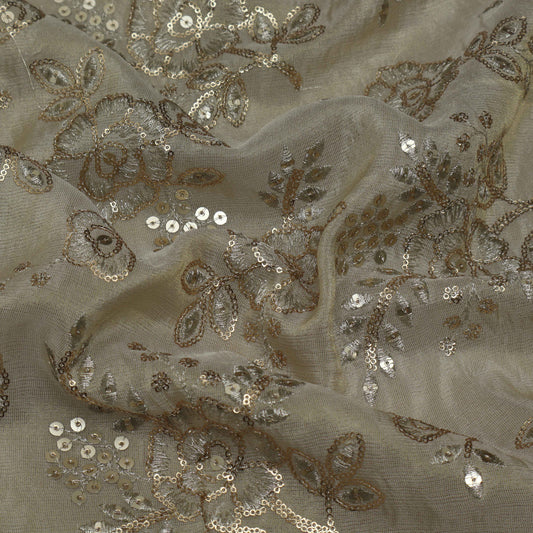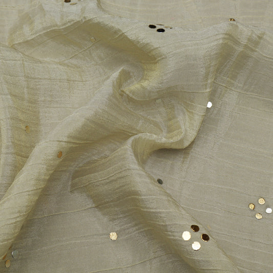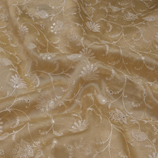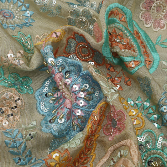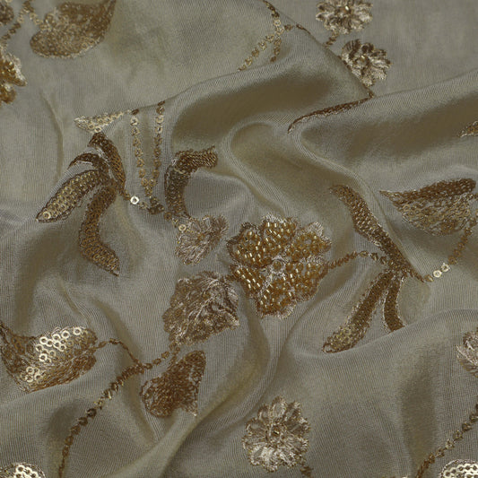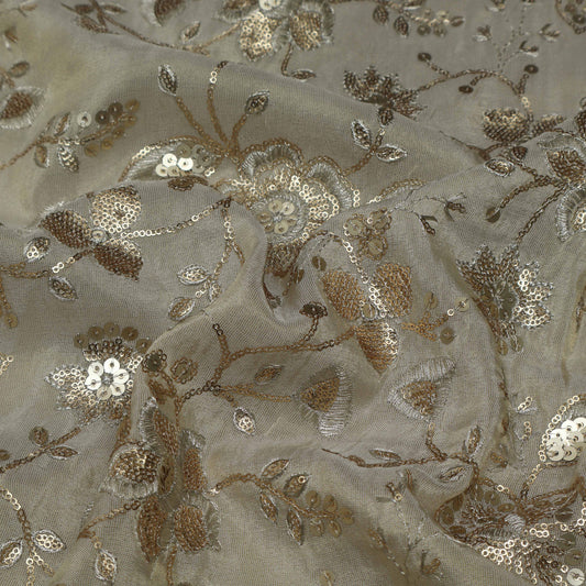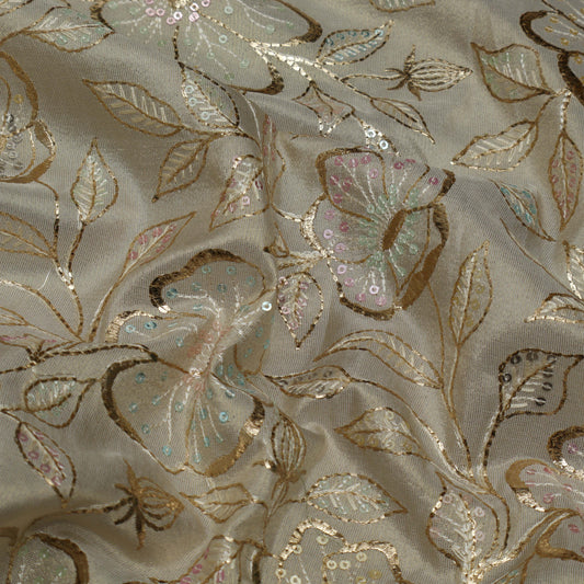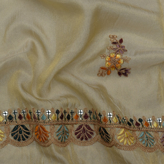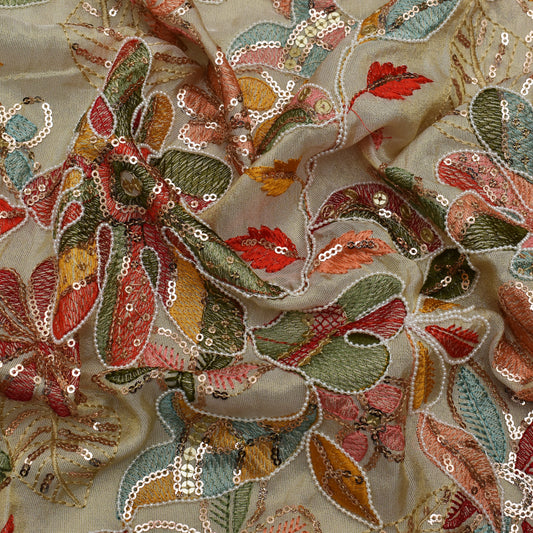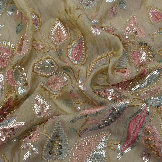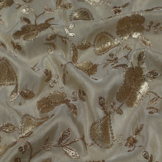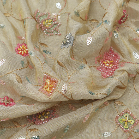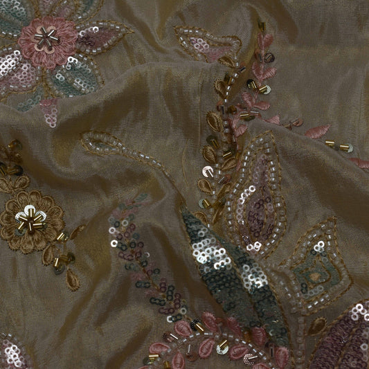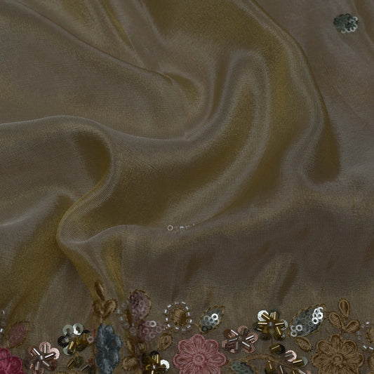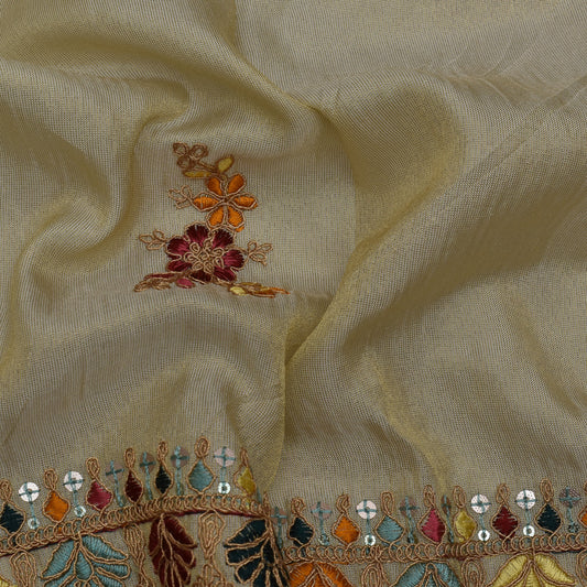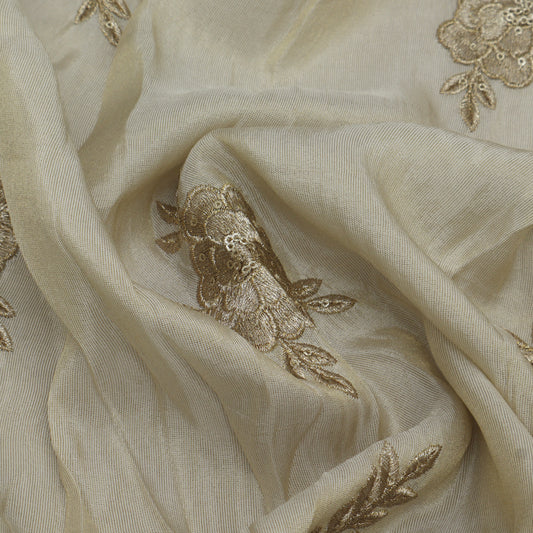Beige Color Tissue Border Sequins Embroidery Fabric