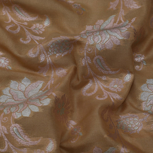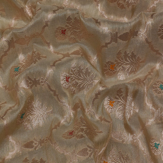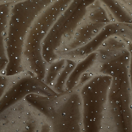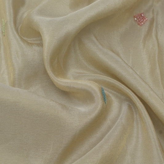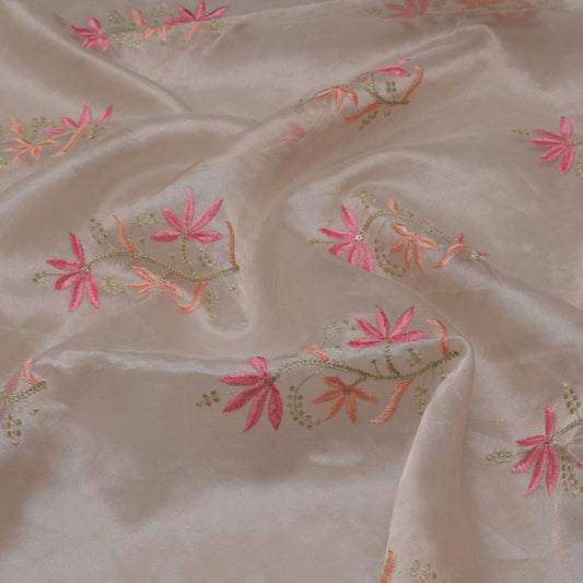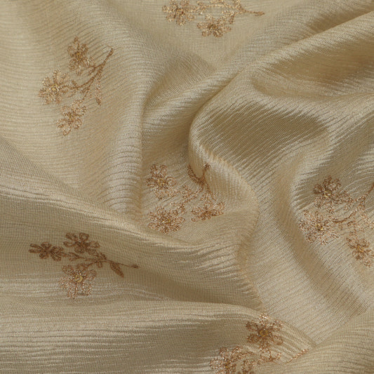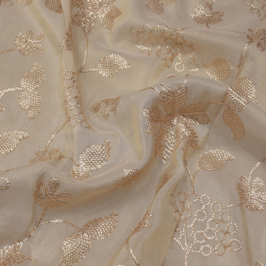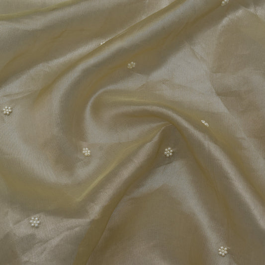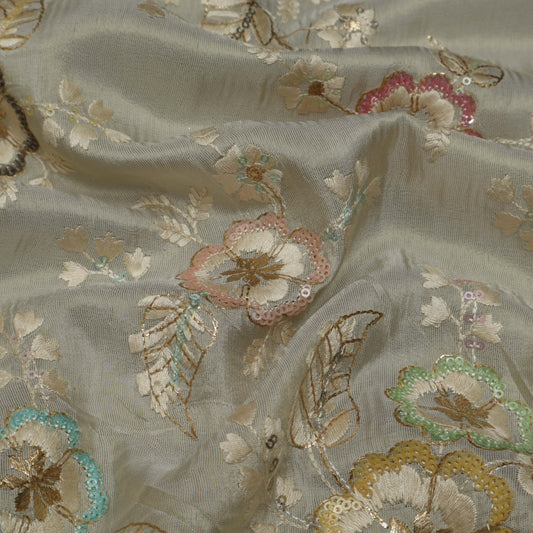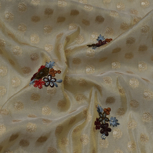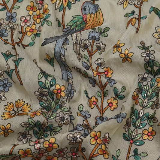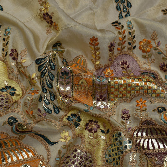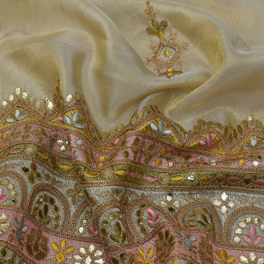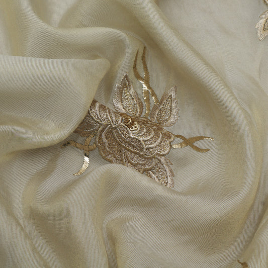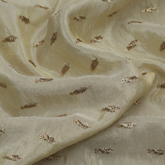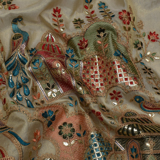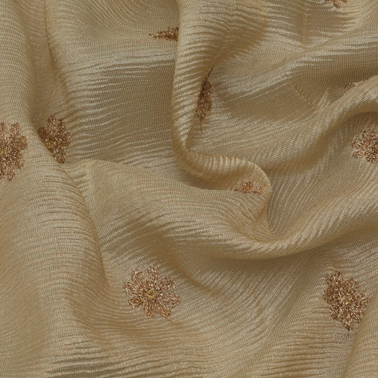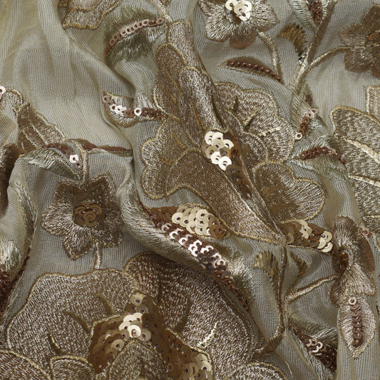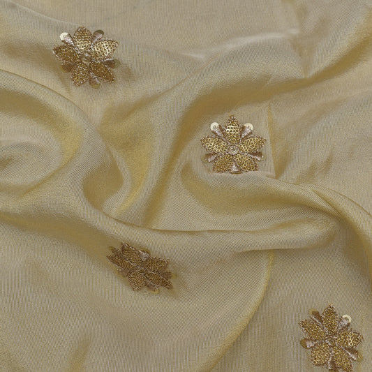 Beige Color Tissue Border Sequins Embroidery Fabric