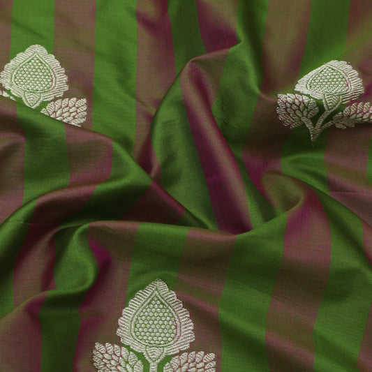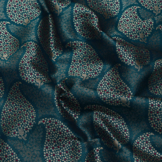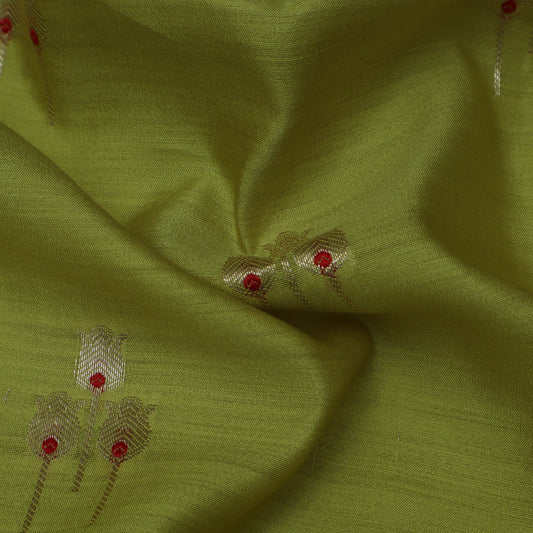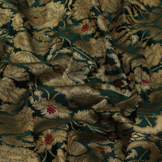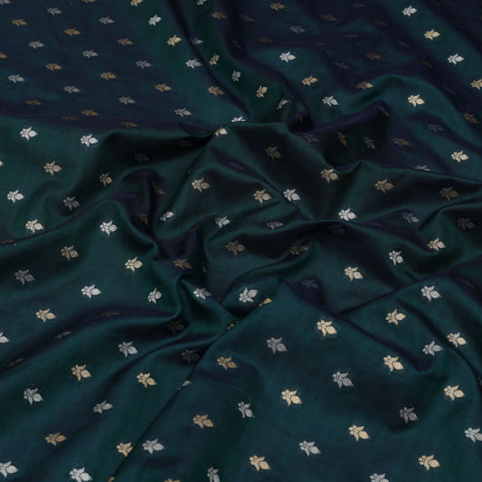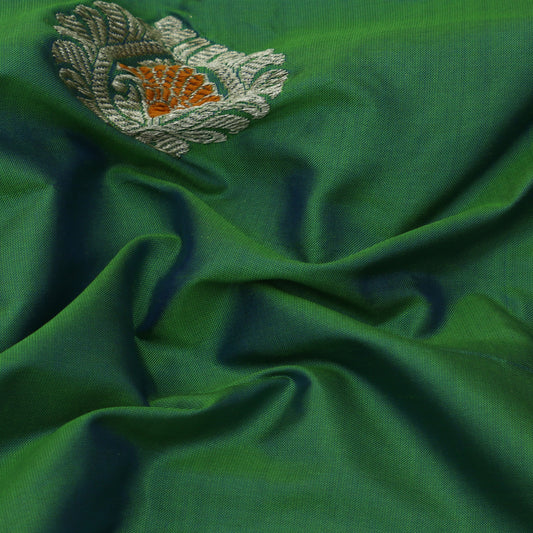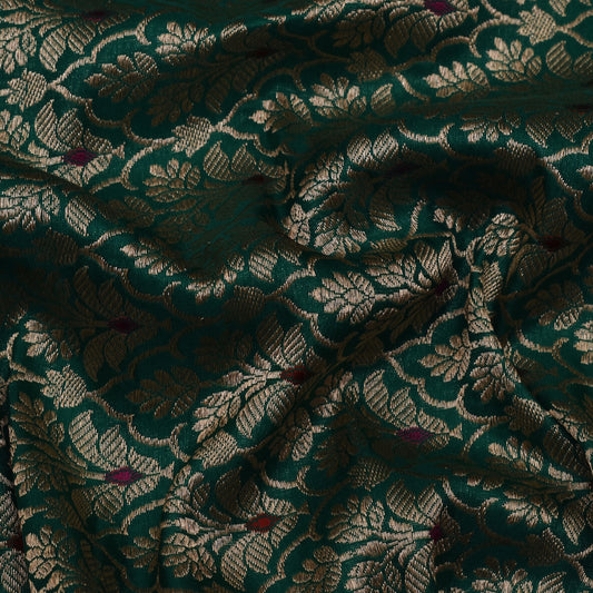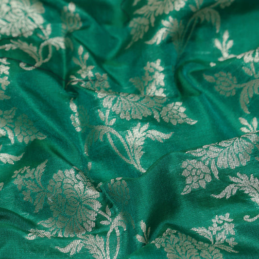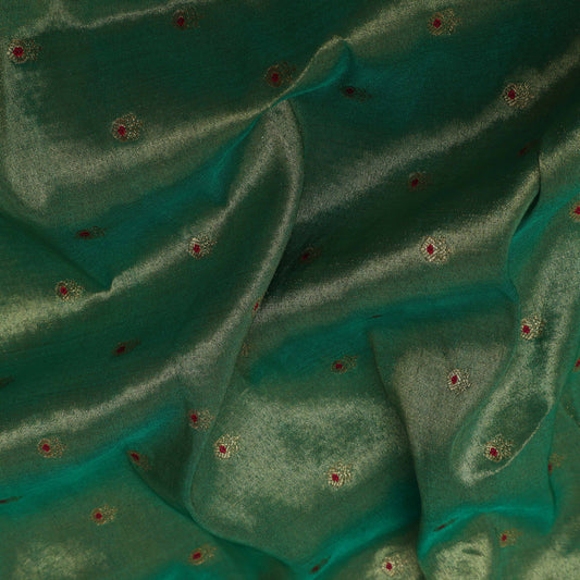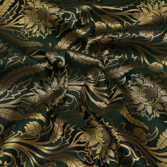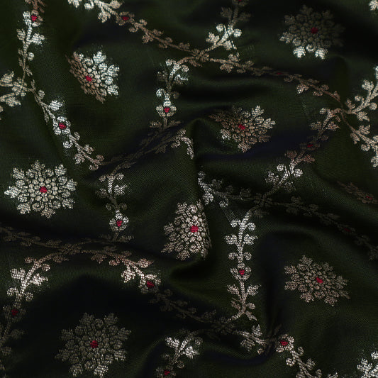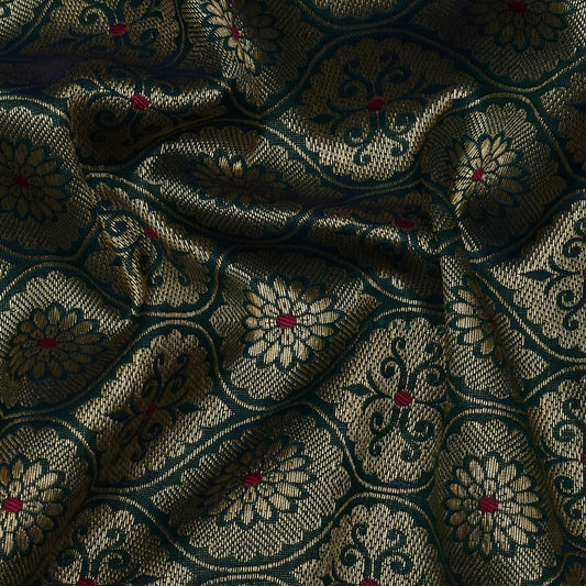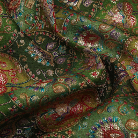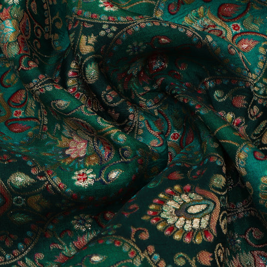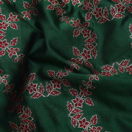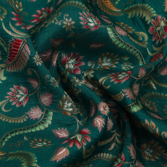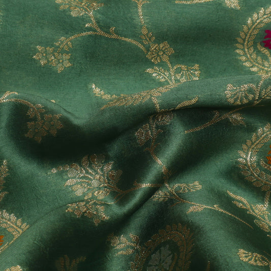 Green Color Dola Silk Jaquard Floral Print Fabric