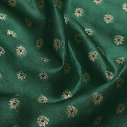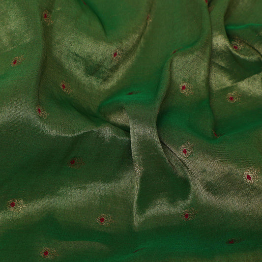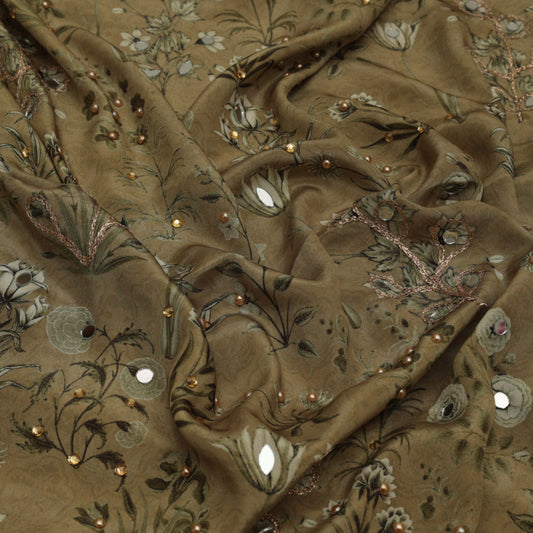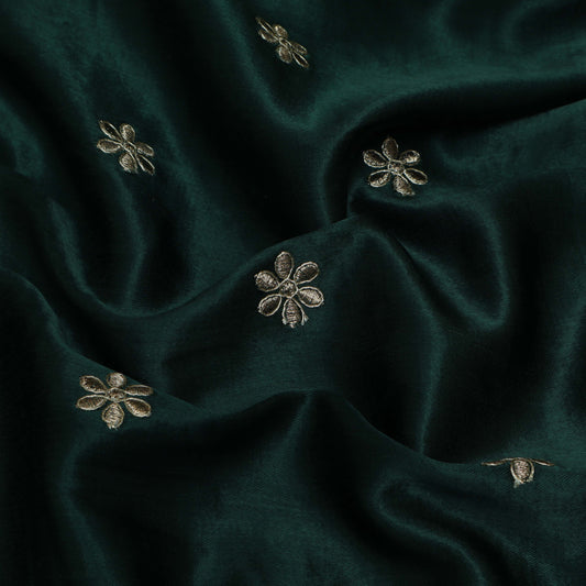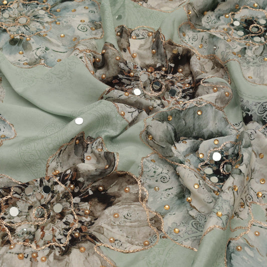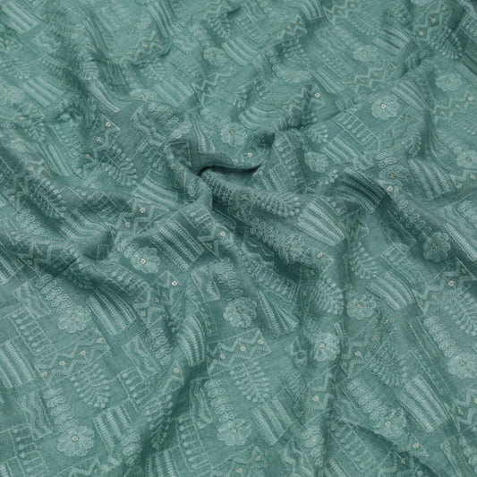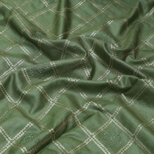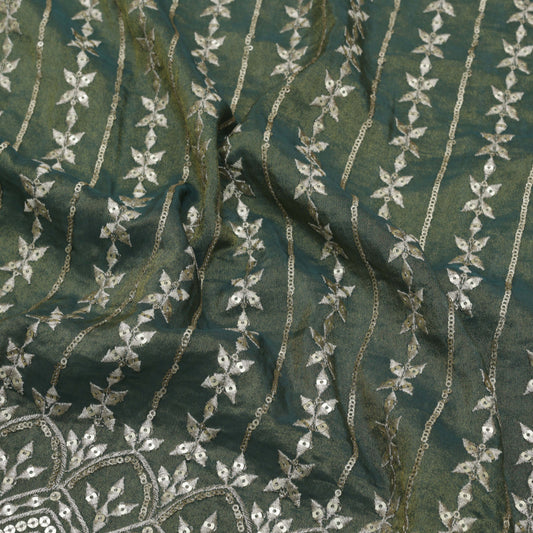 Green Color Fabric Tussar Sequins Embroidery Fabric