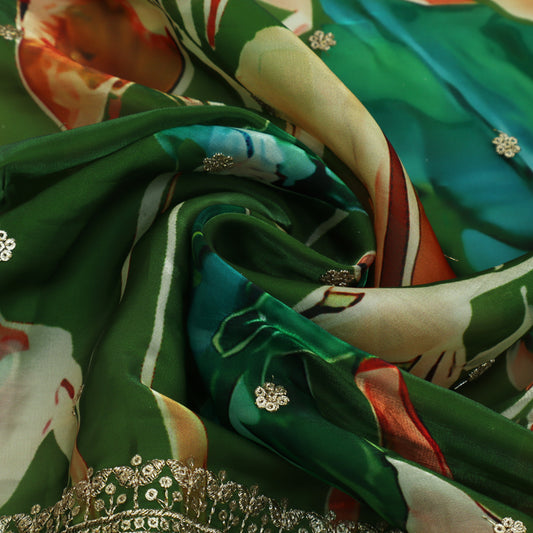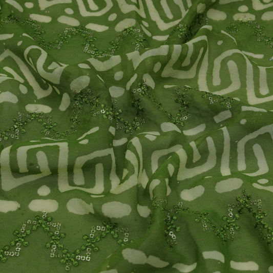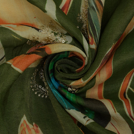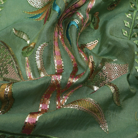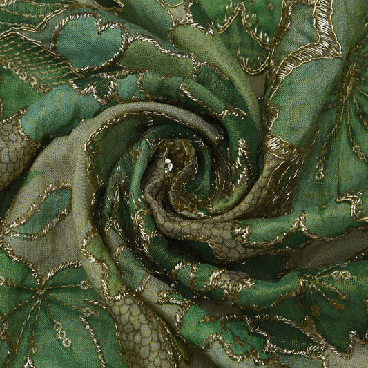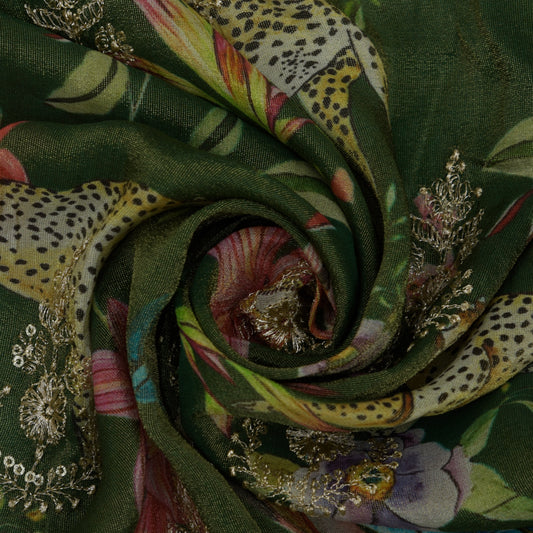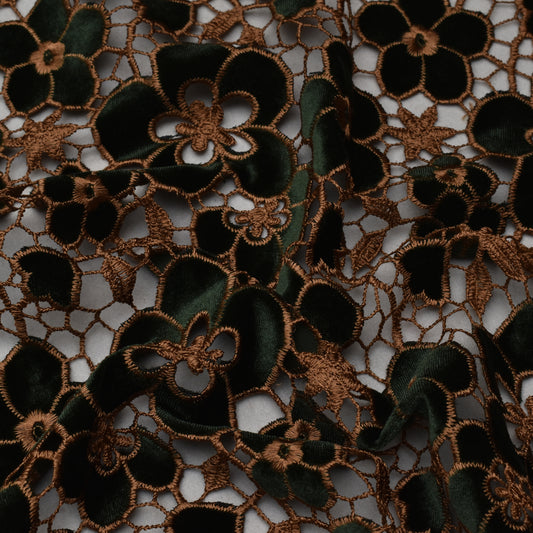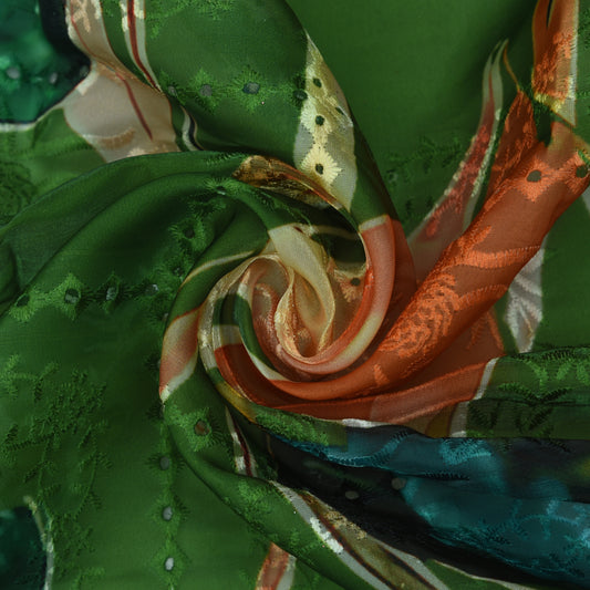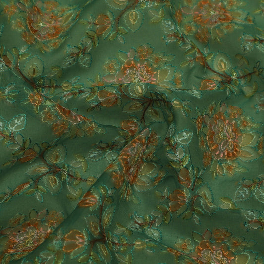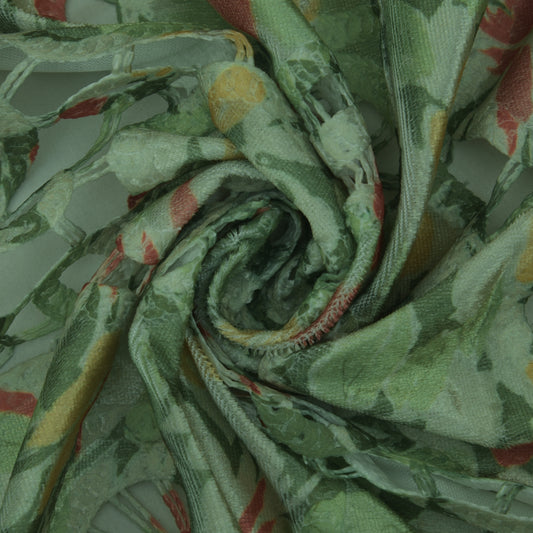 Green Color Velvet Cut Work Print Embroidery Fabric