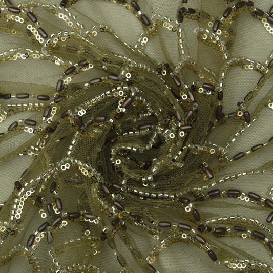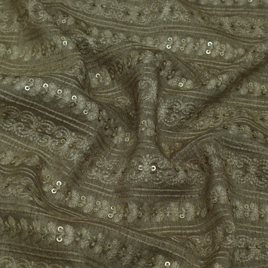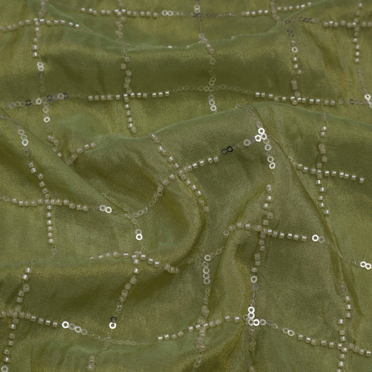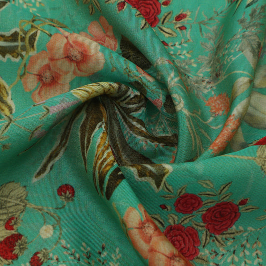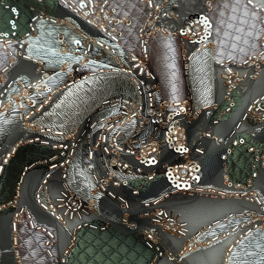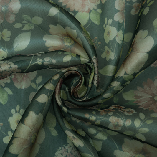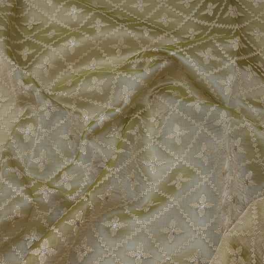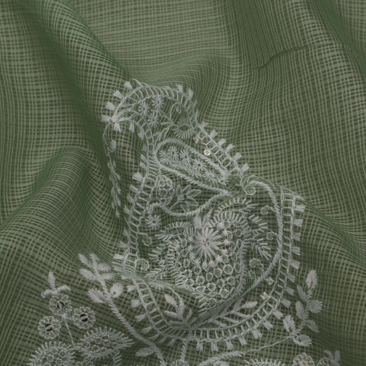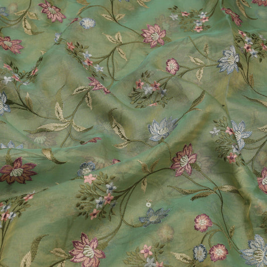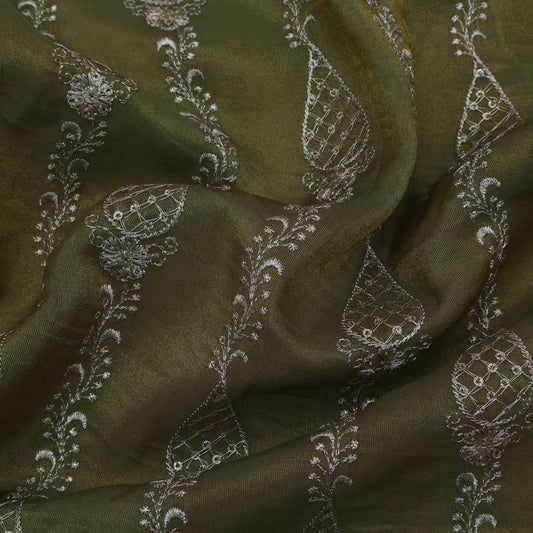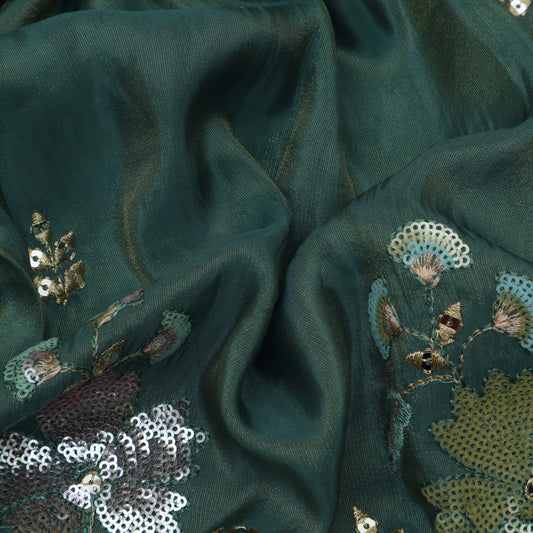 Green Color Velvet Cut Work Print Embroidery Fabric