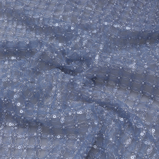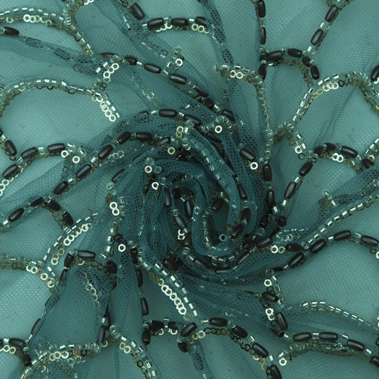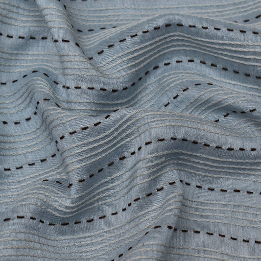 Greyish Teal Color Cotton Stripe Embroidery Fabric