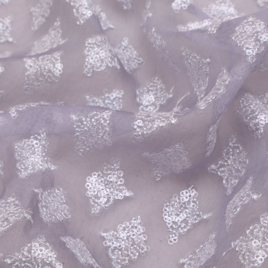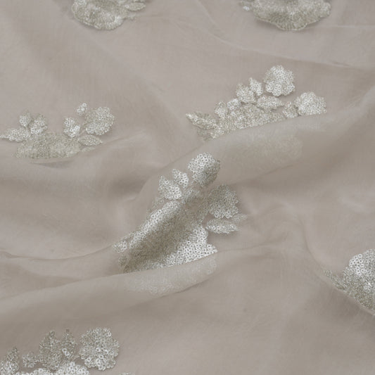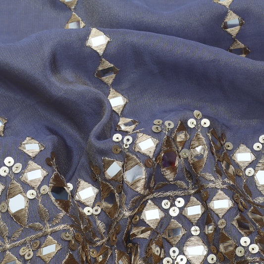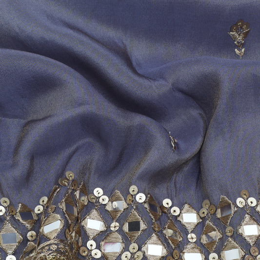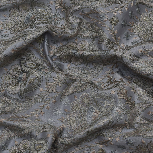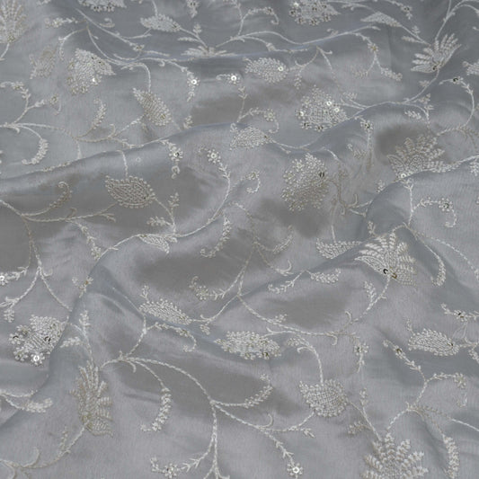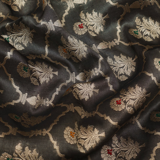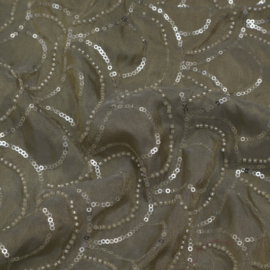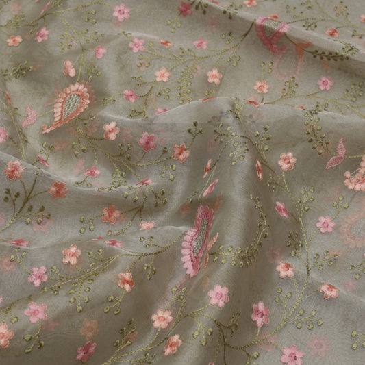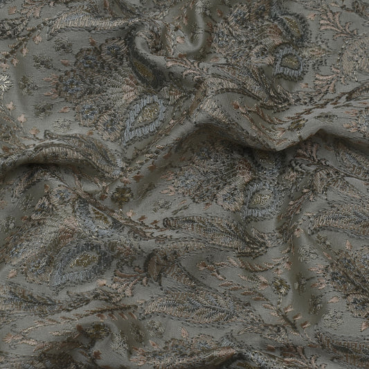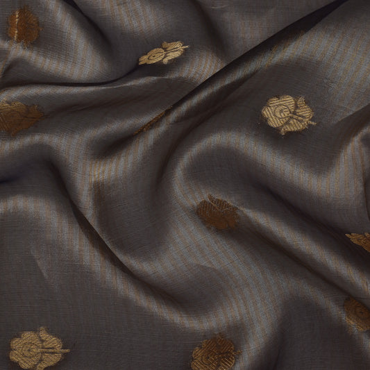 Greyish Green Color Color Crush Tissue Booti Fabric