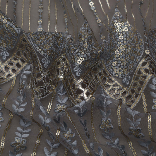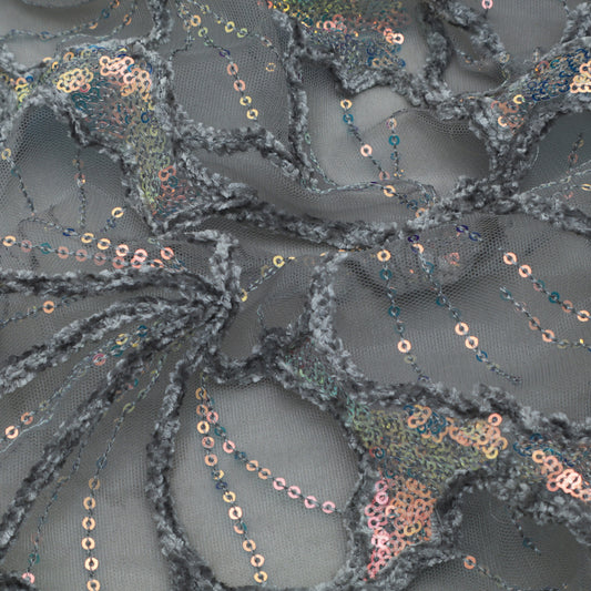 Grey Color Velvet Lycra Stripe Shimmer Fabric