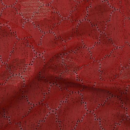 Light Red Color Chanderi Jaquard Print Fabric