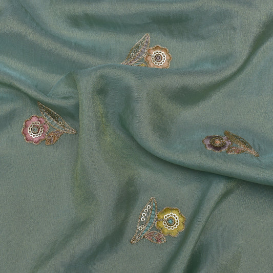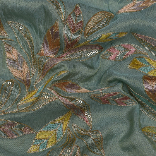 Mehndi Green Color Fabric Nokia Silk Embroidery Fabric