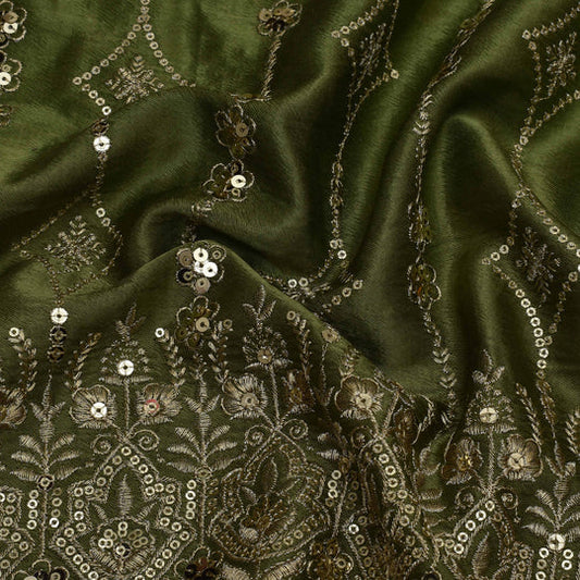 Mehndi Green Color Malai Chanderi Embroidery Fabric