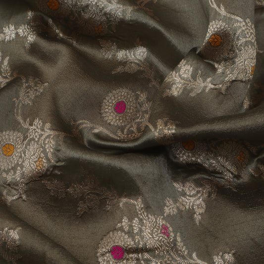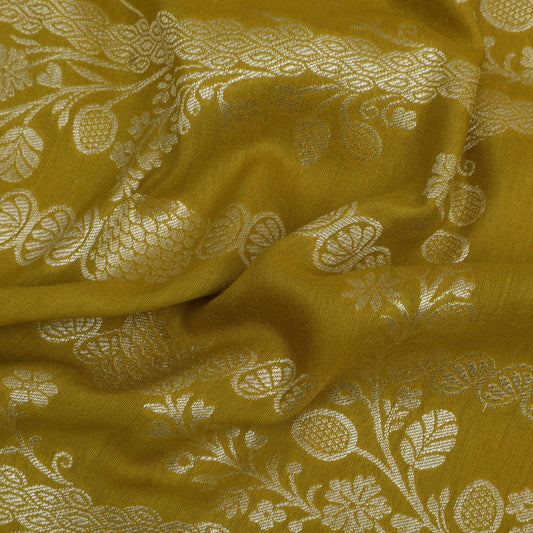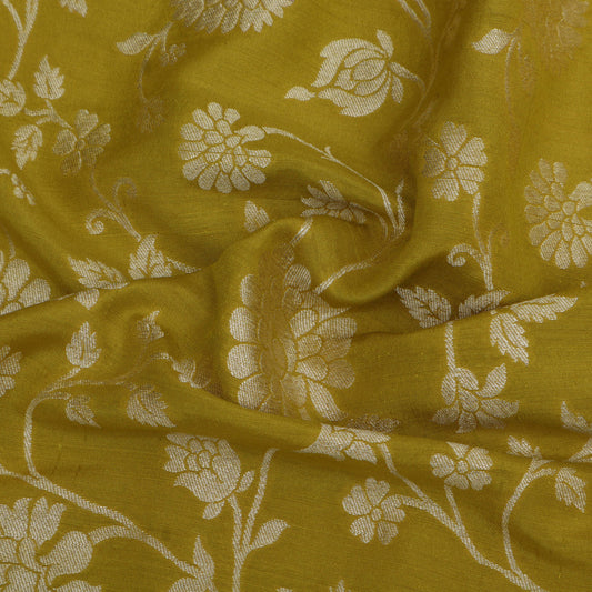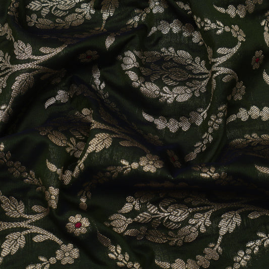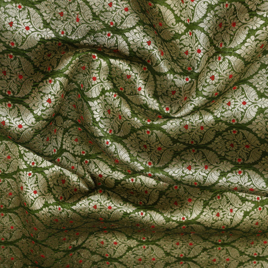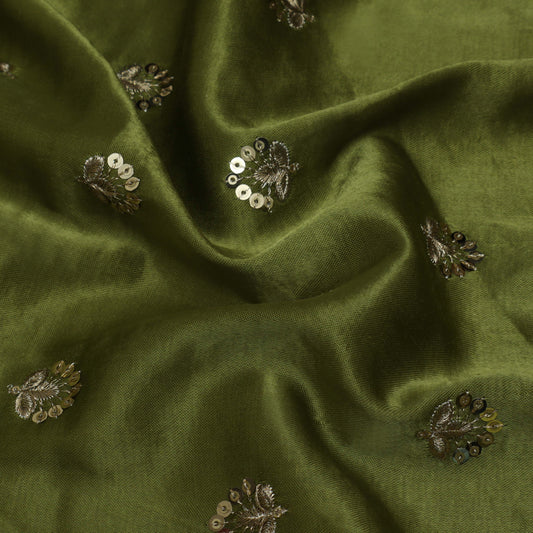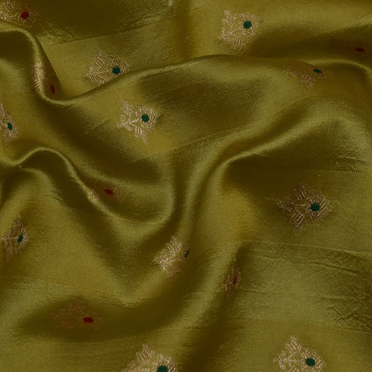 Mehndi Green Color Katan Tanchui Booti Fabric