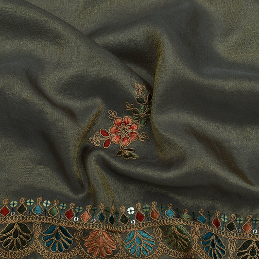 Mehndi Green Color Gajji Silk Border Embroidery Fabric