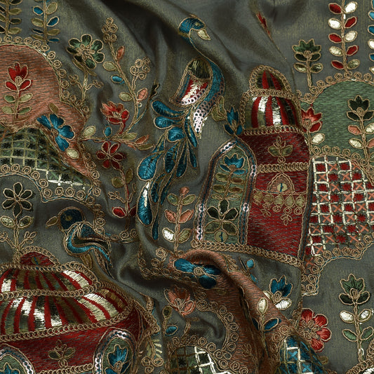 Mehndi Green Color Gajji Silk Embroidery Fabric
