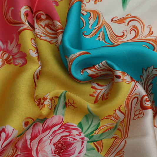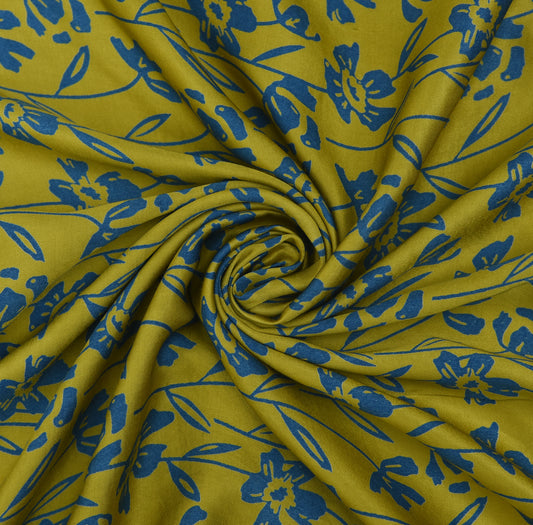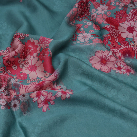Mehndi Green Color Crepe Position Print Embroidery Fabric