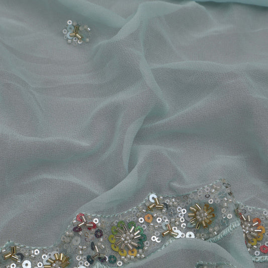 Mint Green Color Georgette Border Sequence Embroidery Fabric