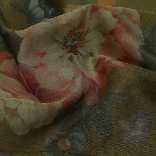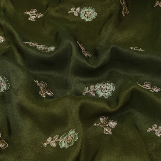 Mehndi Green Color Organza Embroidery Designer Fabric