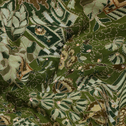 Mehndi Green Color Gajji Silk Embroidery Fabric (Cut Pieces 1Mtr)