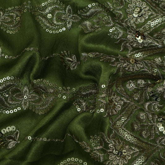 Mehndi Green Color Katan Munga Silk embroidery Fabric