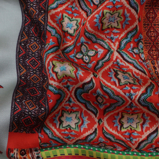 Mehndi Green Color Mulmul Print Border Embroidery Fabric