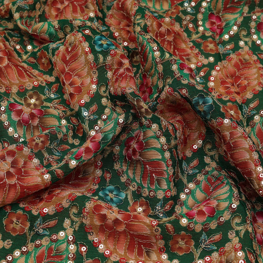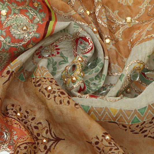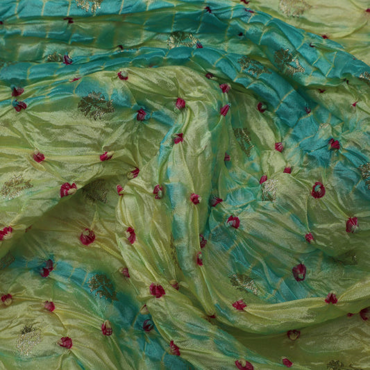 Multi Color Chanderi Kantha Work Tie And Dye Fabric