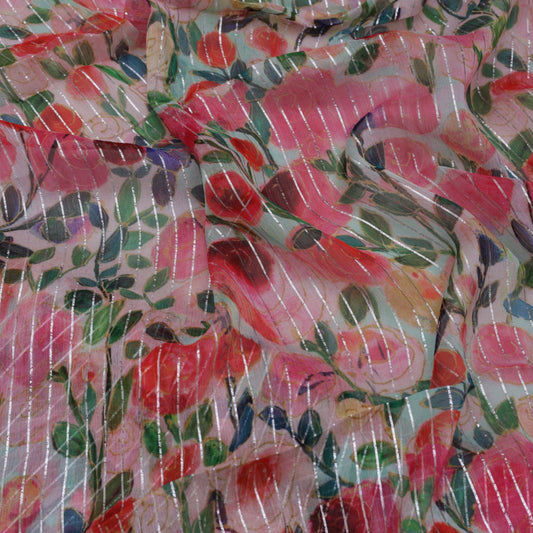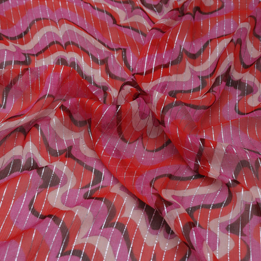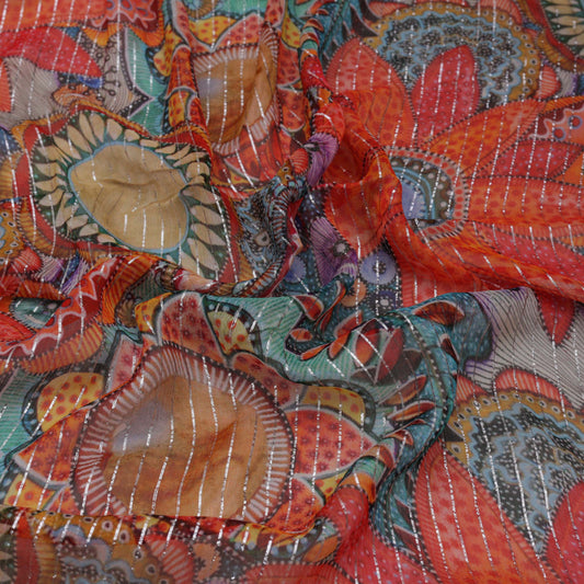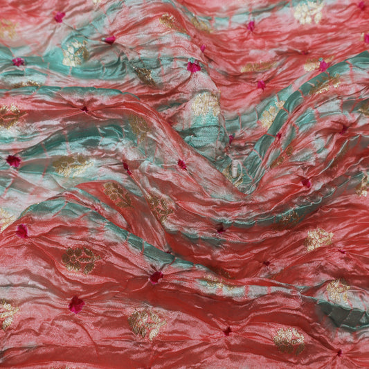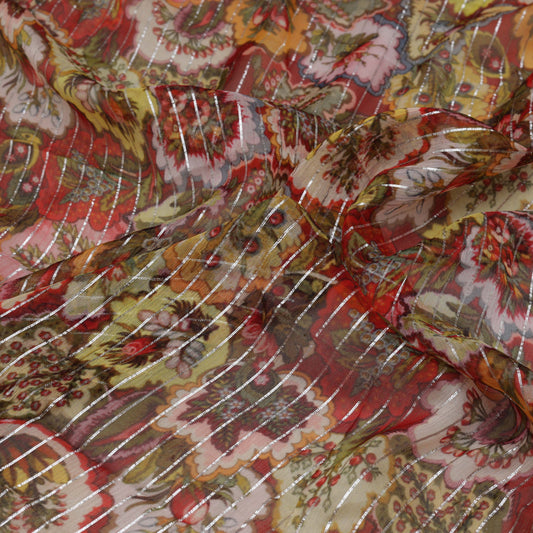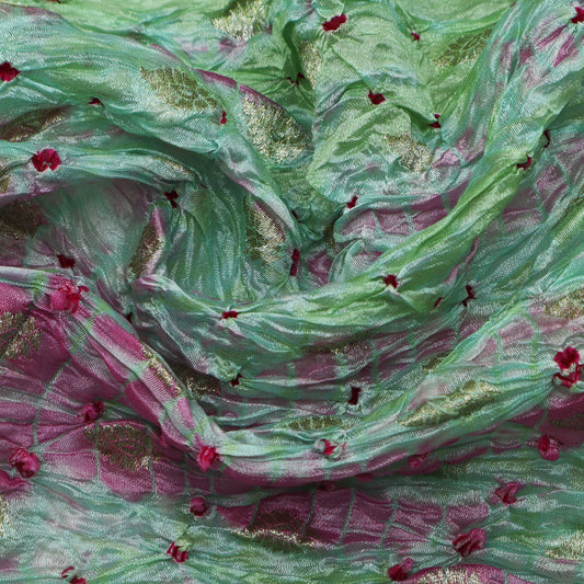 Multi - Color Fabric Slub Chanderi Print Fabric Zari Fabric