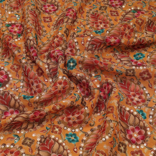 Multi - Color Fabric Slub Chanderi Print Fabric