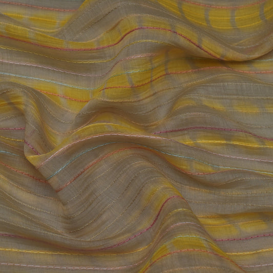 Multi Color Chanderi Tie & Die Border Embroidery Fabric